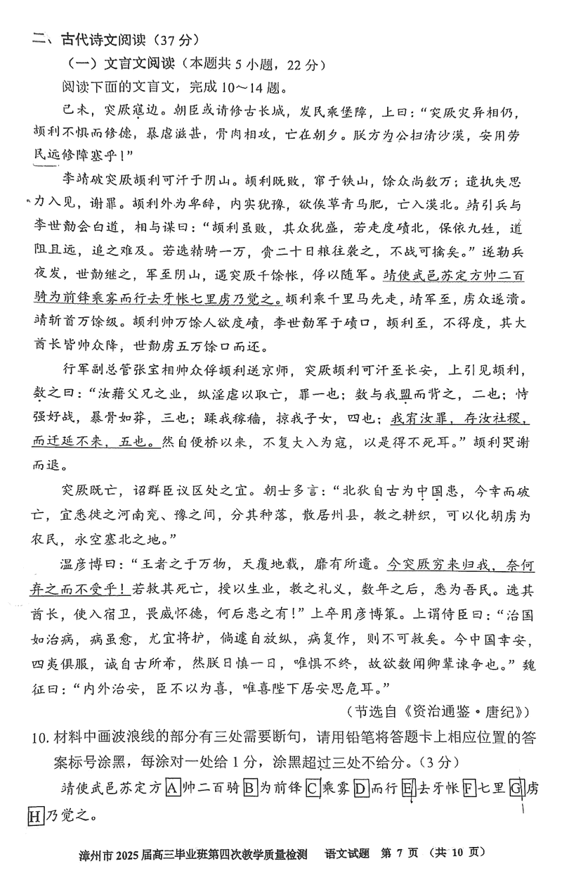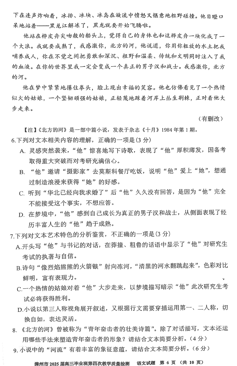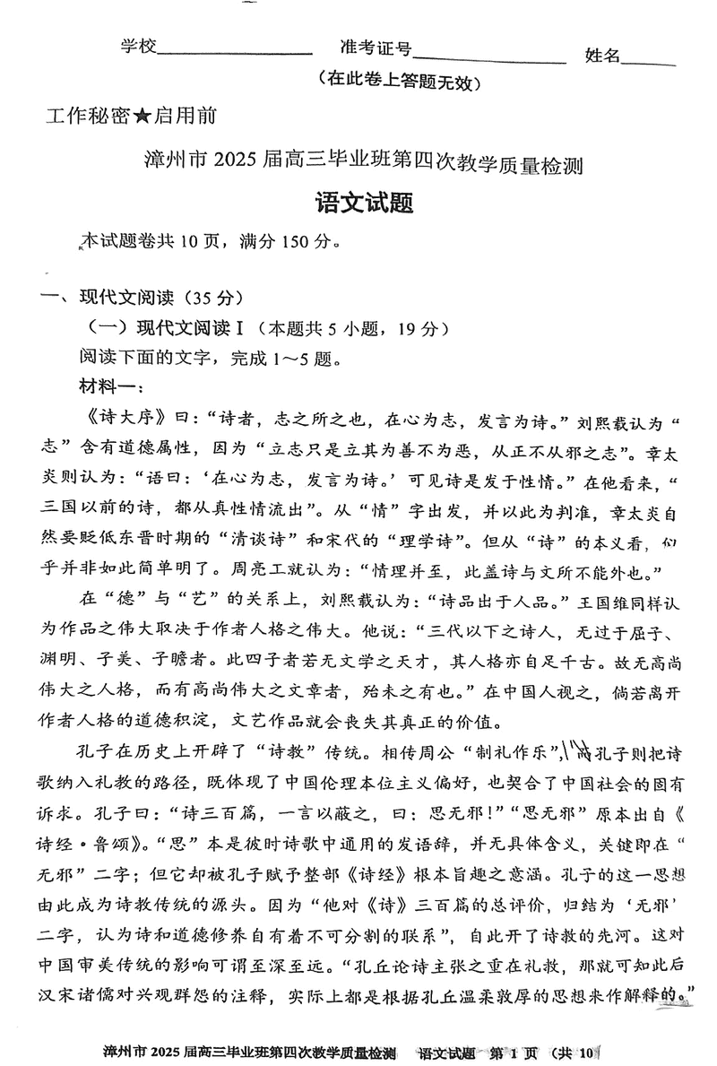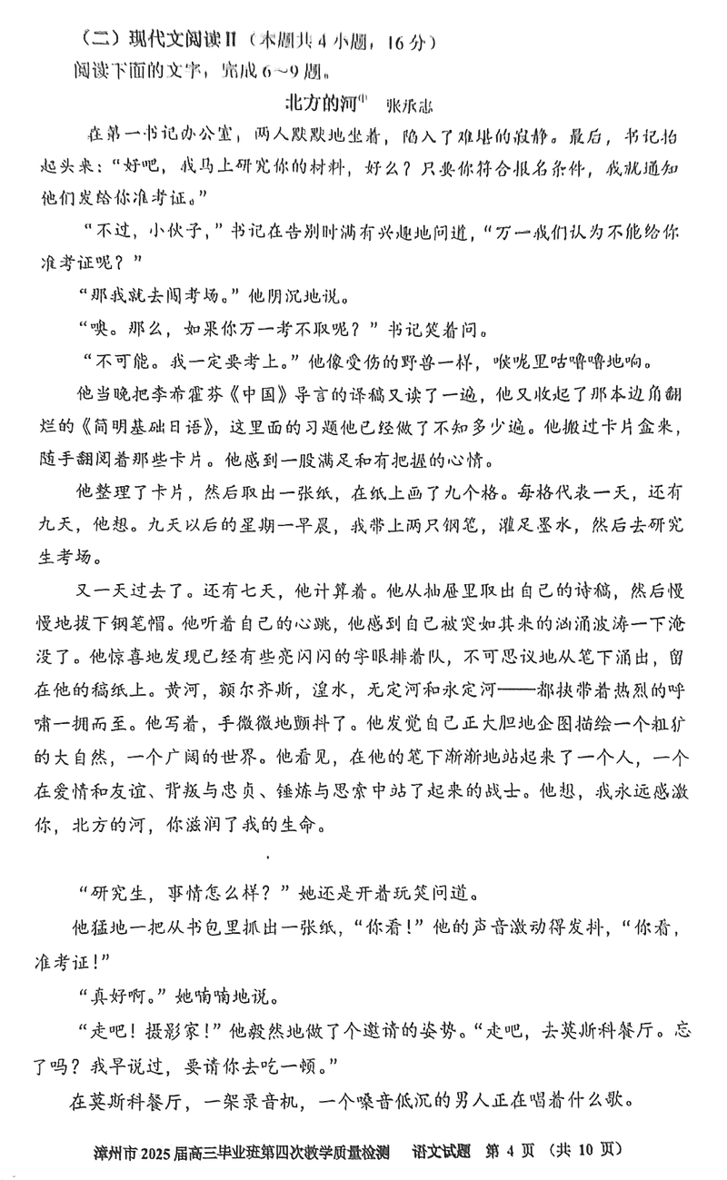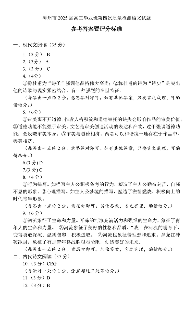 漳州四检2025届高三第四次教学质检语文试题及答案