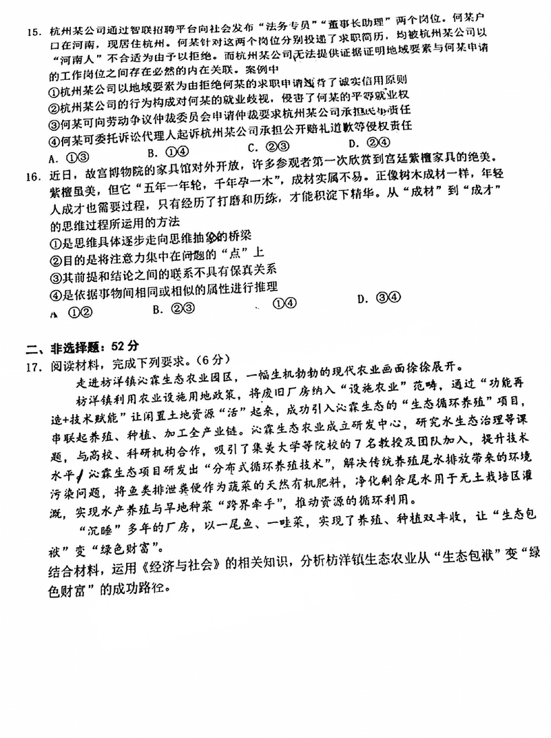 漳州四检2025届高三第四次教学质检政治试题及答案