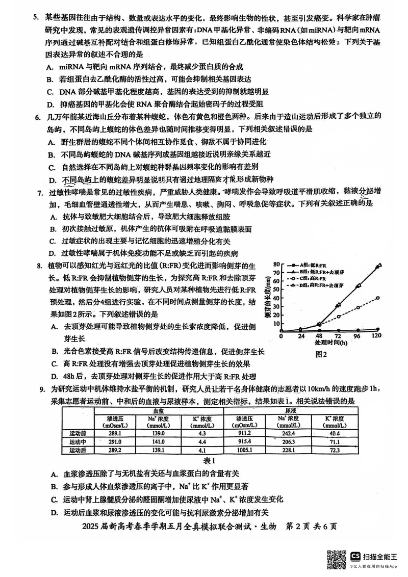 2025届广西邕衡教育名校联盟高三5月全真模拟测试生物试题及答案