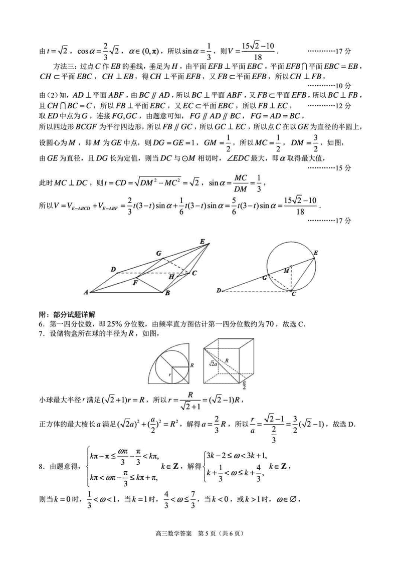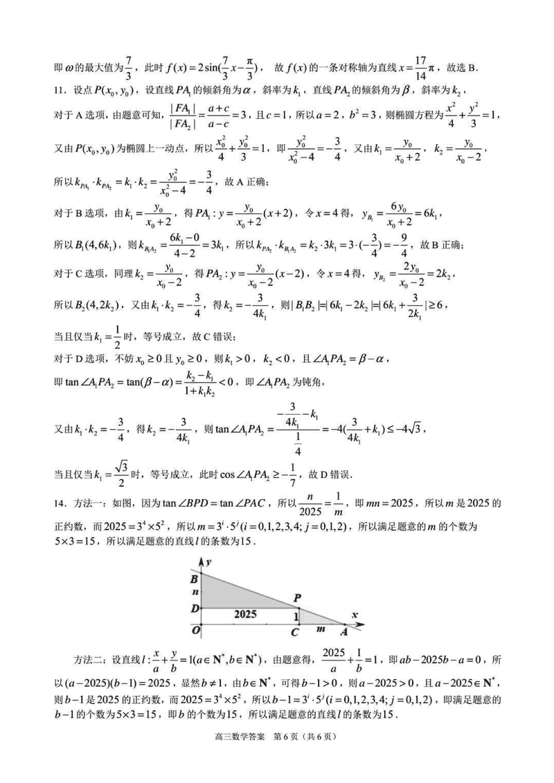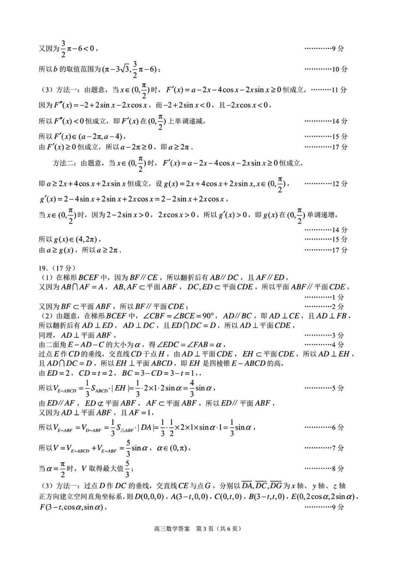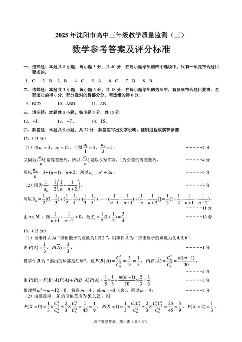 沈阳市2025届高三下教学质量监测(三)数学试题及答案