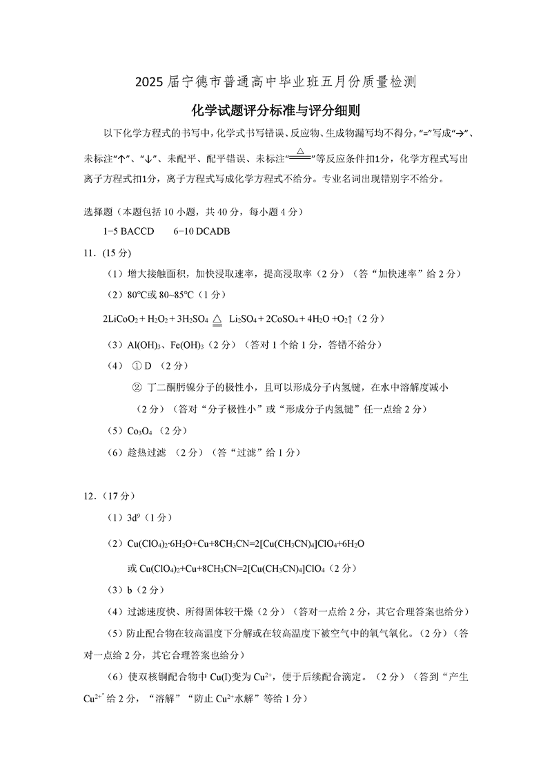 宁德四检2025届高三5月质量检测化学试题及答案 时间:2025-05-15 福建 理综试题 宁德四检2025届高三5月质量检测化学考试已于近日开考,为方便考生考后及时查看考试情况,查漏补缺、弥补不足,本文整理了试题答案解析相关信息! 汇总:宁德四检2025届高三5月质量检测试题及答案汇总 化学试题及答案解析