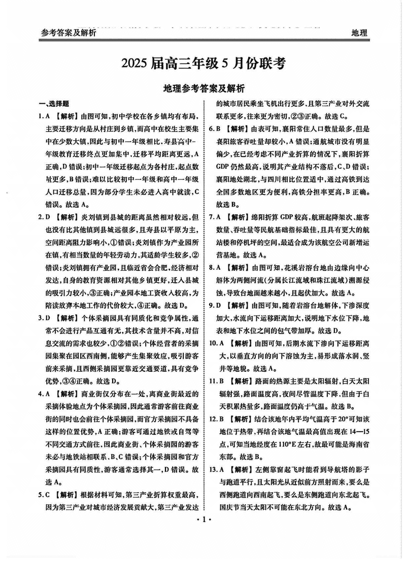 衡水金卷2025届高三年级5月联考地理试题及答案