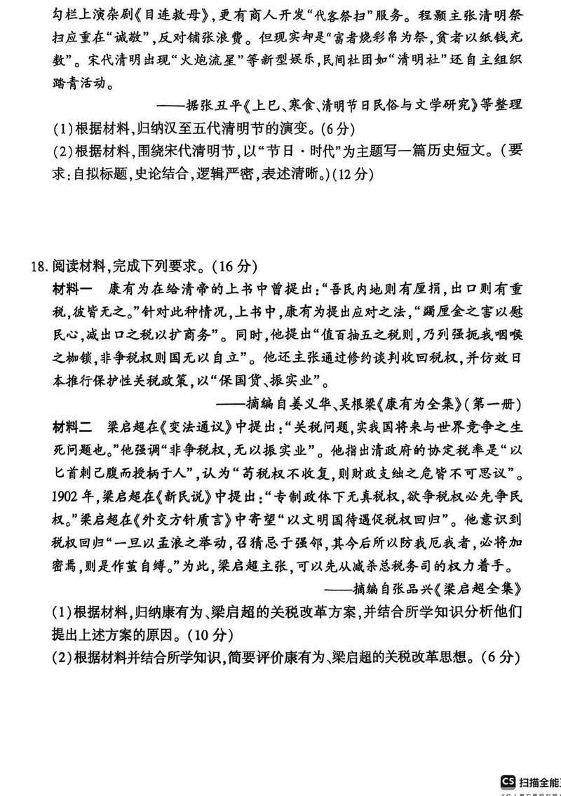 2025届百师联盟高三二轮复习联考(三)历史试题及答案