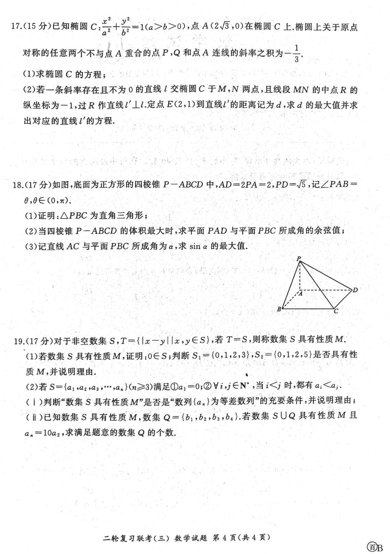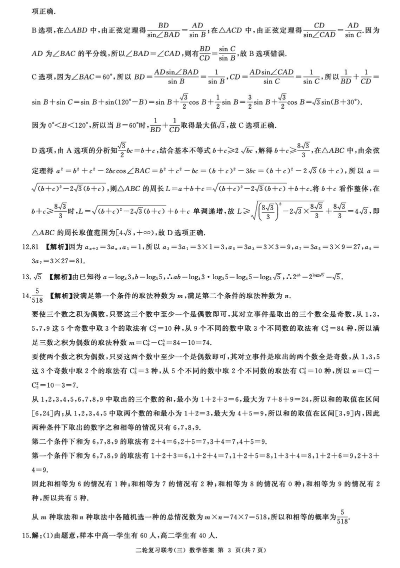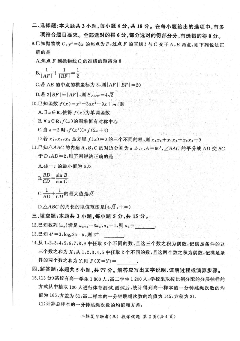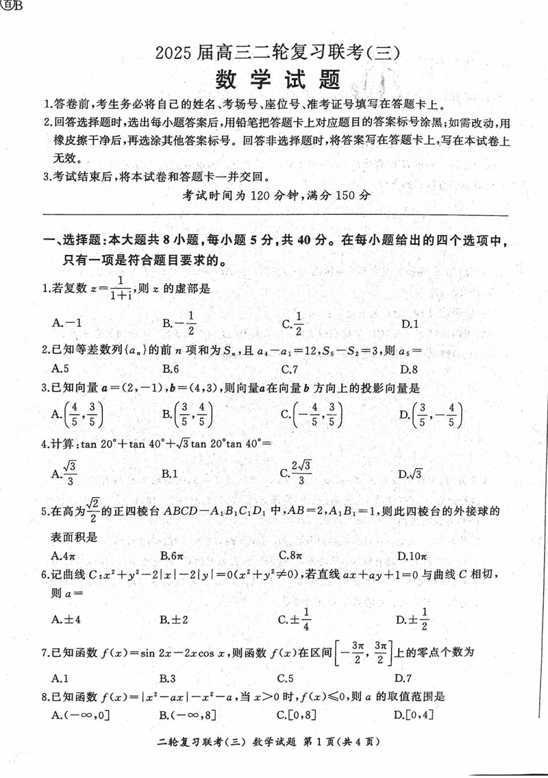 2025届百师联盟高三二轮复习联考(三)数学试题及答案