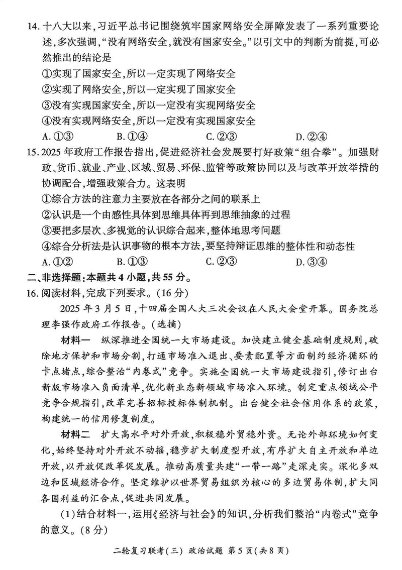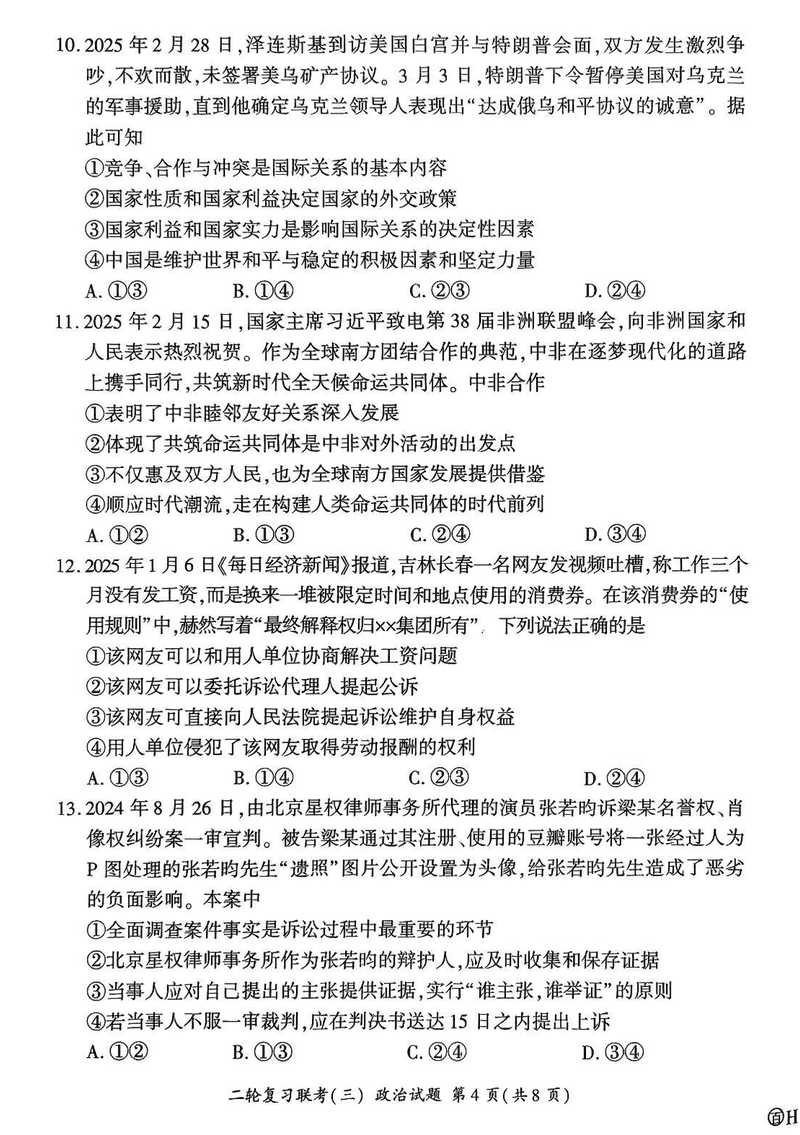 2025届百师联盟高三二轮复习联考(三)政治试题及答案