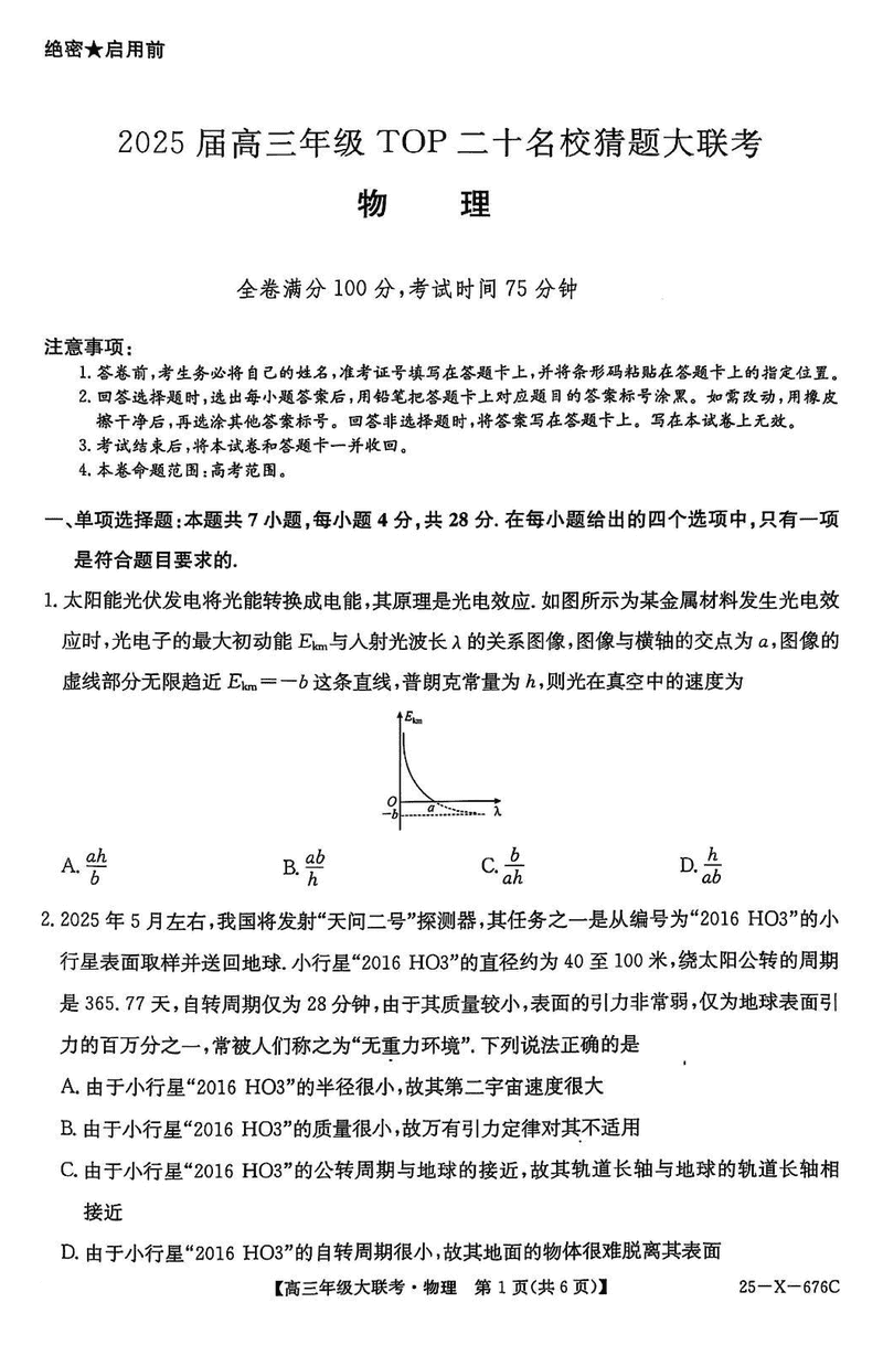 河南TOP二十名校2025届高三猜题大联考物理试题及答案