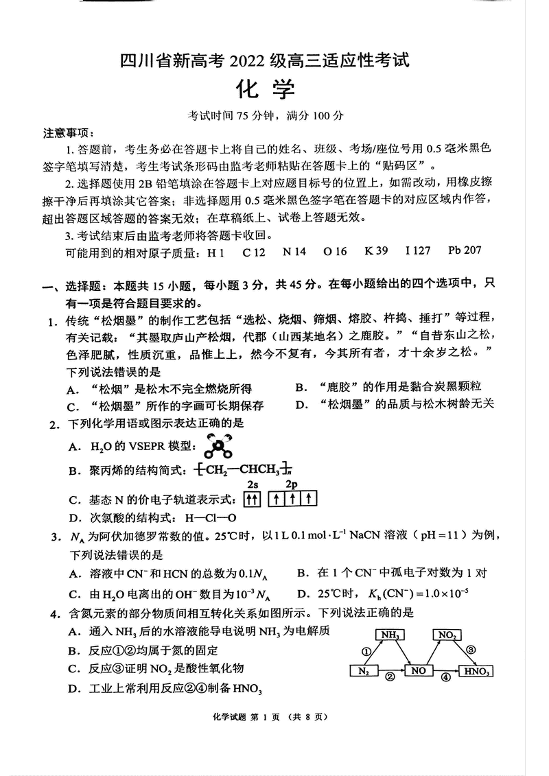 四川蓉城名校联盟新高考2025届高三5月适应性考化学考试已于近日开考,为方便考生考后及时查看考试情况,查漏补缺、弥补不足,本文整理了试题答案解析相关信息!