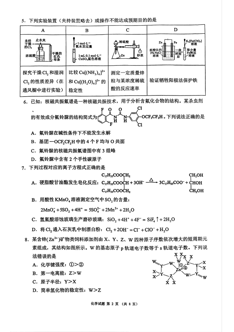 四川蓉城名校联盟新高考2025届高三5月适应性考化学试题及答案