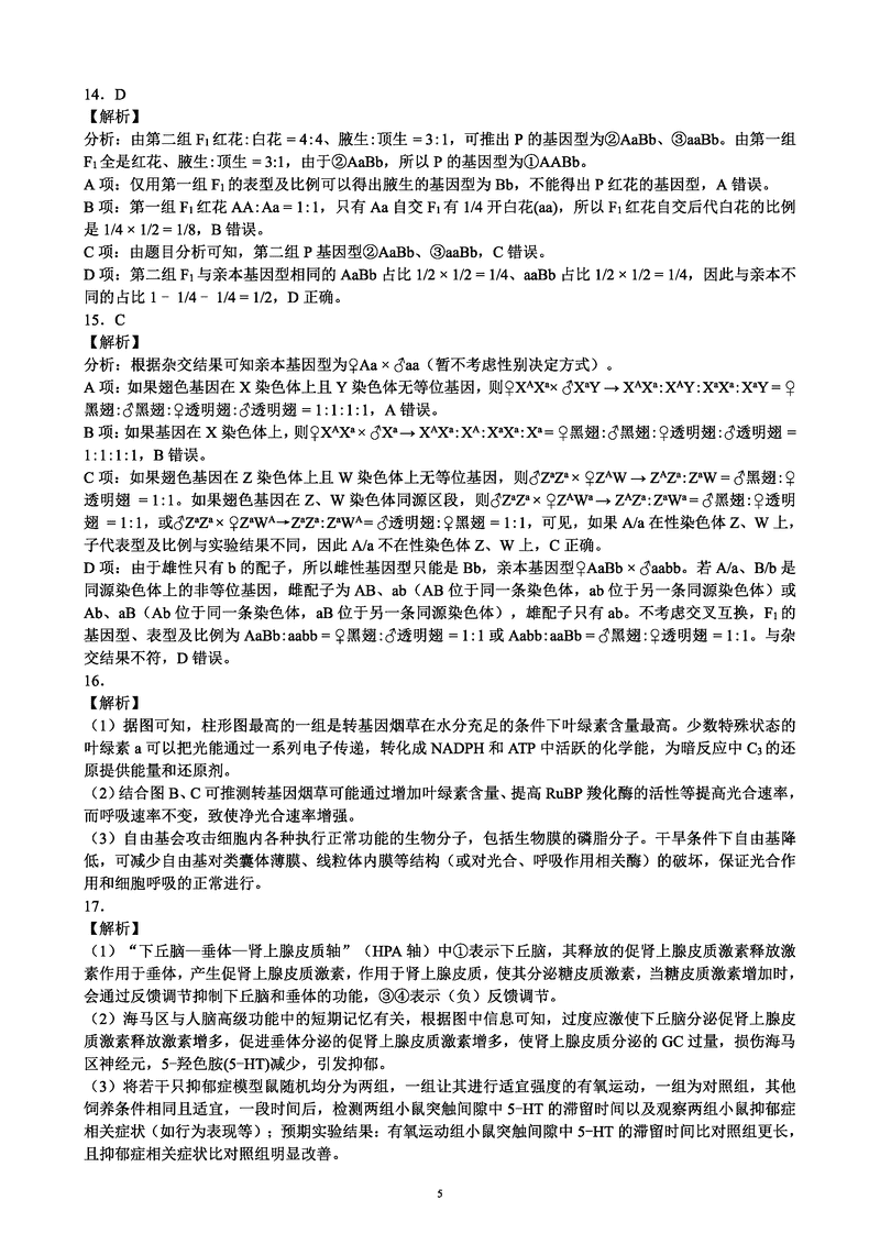 四川蓉城名校联盟新高考2025届高三5月适应性考生物试题及答案