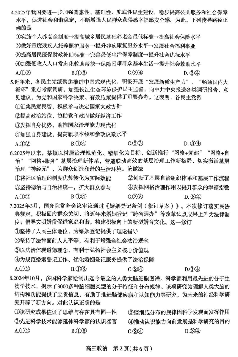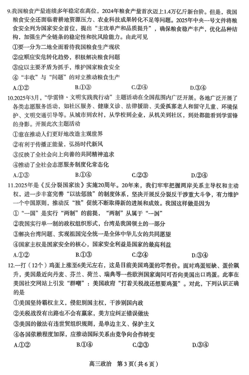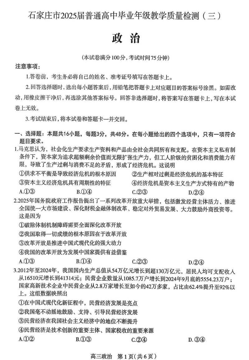 石家庄三模2025届高三教学质检三政治试题及答案 时间:2025-05-16 河北 文综试题 石家庄三模2025届高三教学质量检测三政治考试已于近日开考,为方便考生考后及时查看考试情况,查漏补缺、弥补不足,本文整理了试题答案解析相关信息! 汇总:石家庄三模2025届高三教学质量检测三试题及答案汇总 政治试题及答案解析