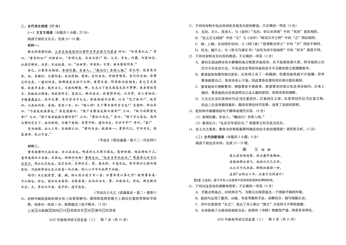 2025年湖北省新高考信息卷(三)语文试题及答案 时间:2025-05-16 湖北 语文试题 2025年湖北省新高考信息卷(三)语文考试已于近日开考,为方便考生考后及时查看考试情况,查漏补缺、弥补不足,本文整理了试题答案解析相关信息! 汇总:2025年湖北省新高考信息卷(三)试题及答案汇总 语文试题及答案解析