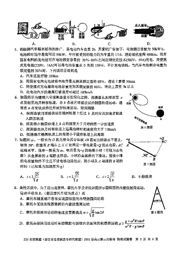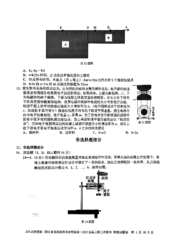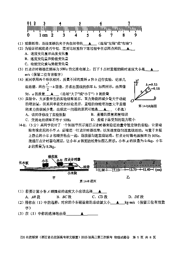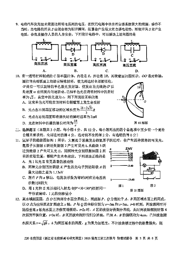浙江Z20名校联盟2025届高三第三次联考物理试题及答案