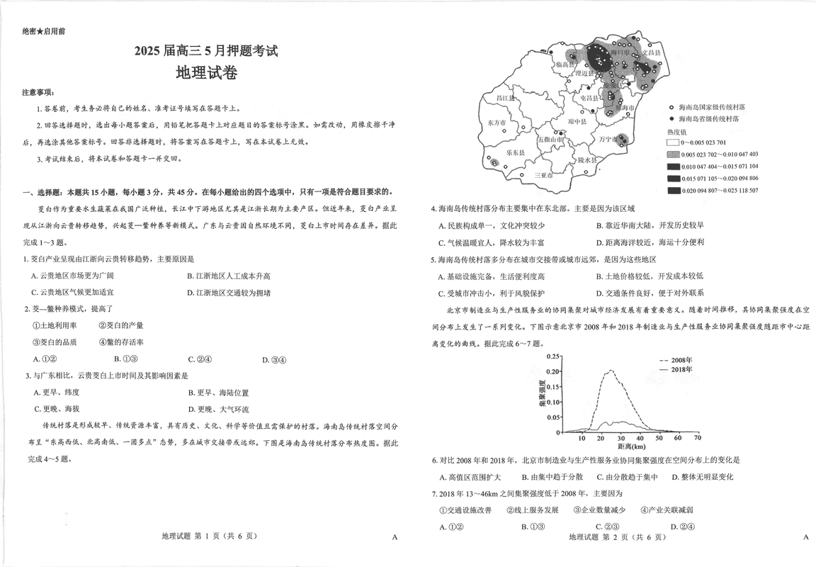 太原三模2025届三重教育高三5月押题地理试题及答案