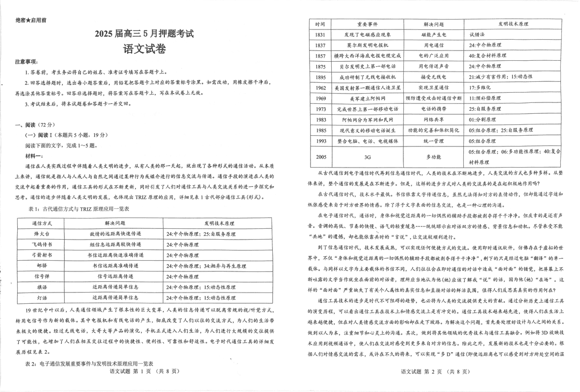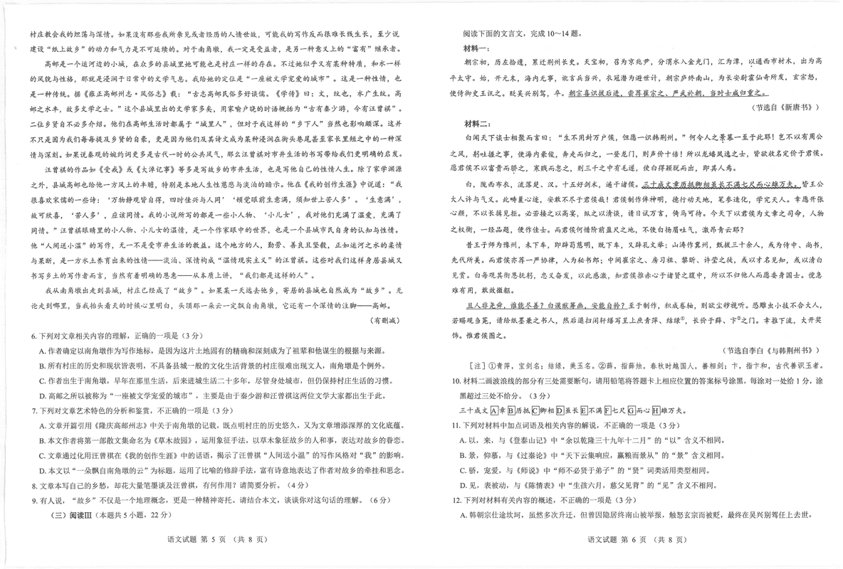 太原三模2025届三重教育高三5月押题语文试题及答案