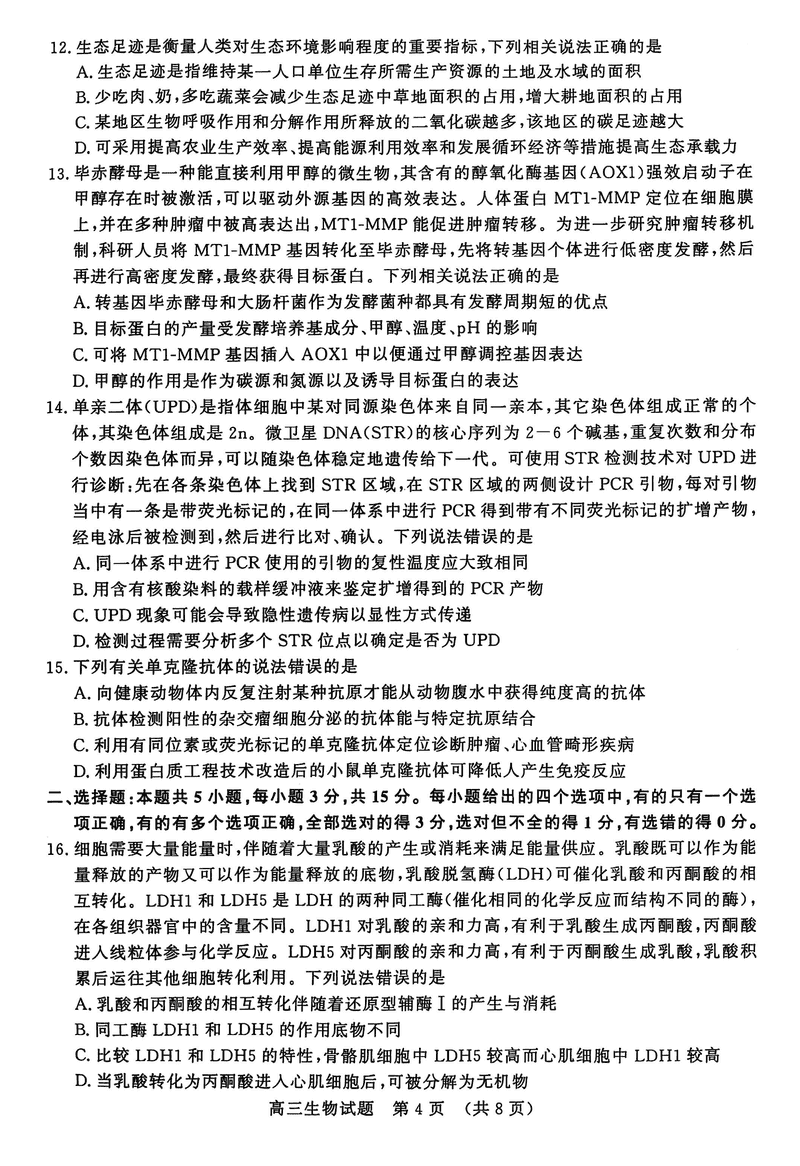 济南二模2025届高三5月针对性训练生物试题及答案 时间:2025-05-17 山东 理综试题 济南二模2025届高三下学期针对性训练生物考试已于近日开考,为方便考生考后及时查看考试情况,查漏补缺、弥补不足,本文整理了试题答案解析相关信息! 汇总:济南二模2025届高三下学期针对性训练试题及答案汇总 生物试题及答案解析