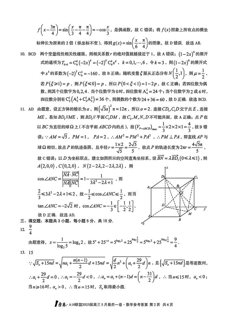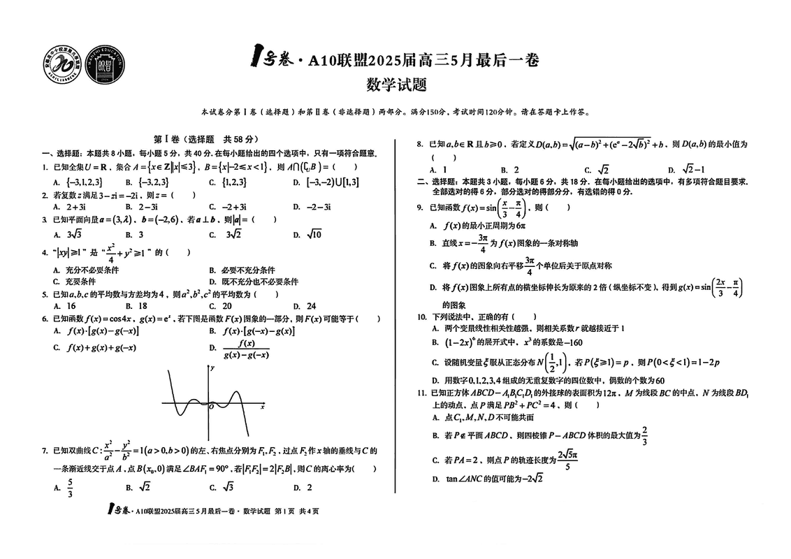 安徽A10联盟2025届高三最后一卷数学试题及答案 时间:2025-05-17 安徽 数学试题 安徽A10联盟2025届高三最后一卷数学考试已于近日开考,为方便考生考后及时查看考试情况,查漏补缺、弥补不足,本文整理了试题答案解析相关信息! 汇总:安徽A10联盟2025届高三最后一卷试题及答案汇总 数学试题及答案解析