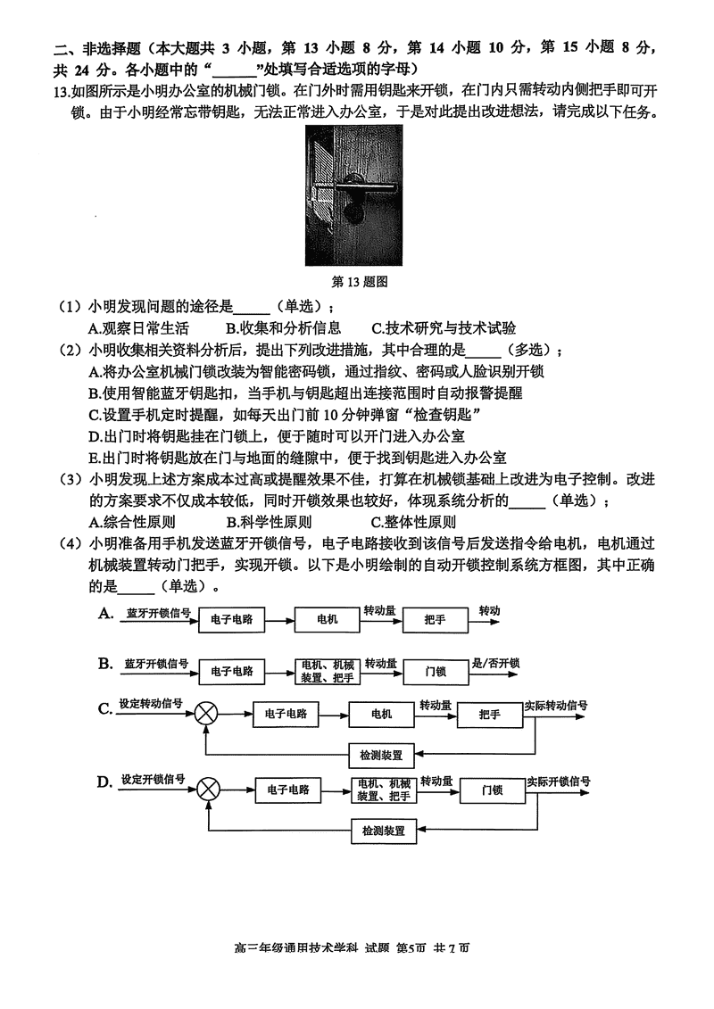 浙江精诚联盟2025高三5月适应性联考技术试题及答案