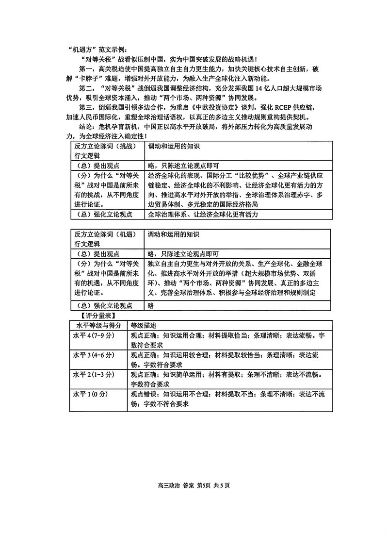 浙江精诚联盟2025高三5月适应性联考政治试题及答案
