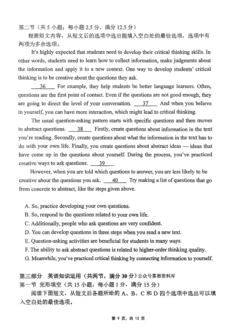 重庆市高2025届学业质量调研抽测(第三次)(九龙坡三诊)英语考试已于近日开考,为方便考生考后及时查看考试情况,查漏补缺、弥补不足,本文整理了试题答案解析相关信息!