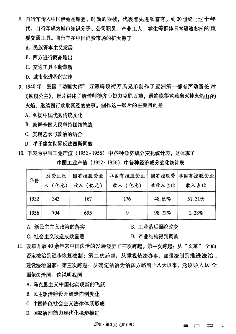 云南师大附中2025届高考适应性月考卷九历史试题及答案