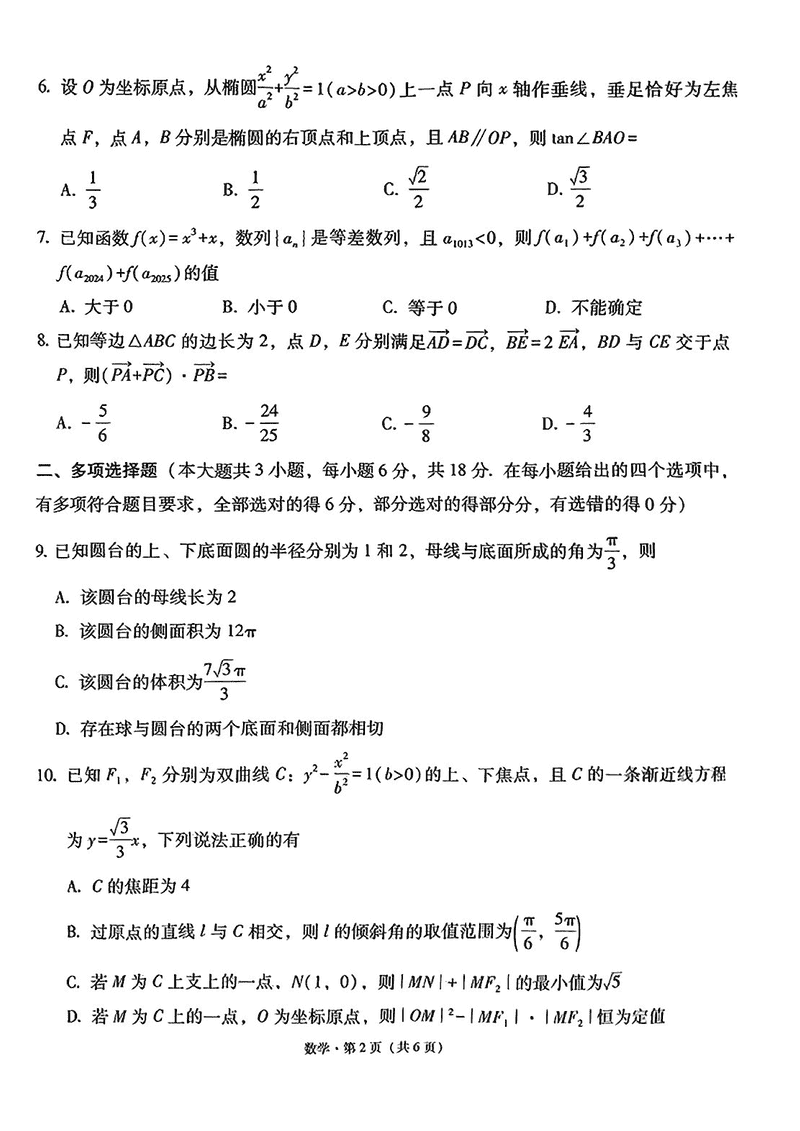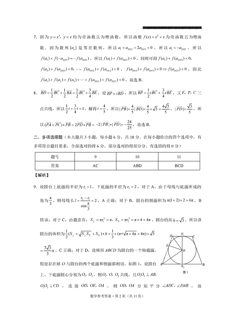 云南师大附中2025届高考适应性月考卷九数学试题及答案