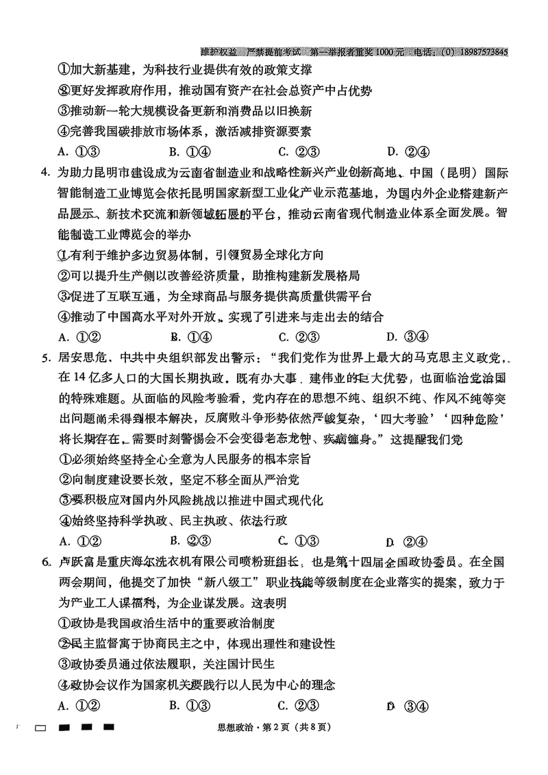 云南师大附中2025届高考适应性月考卷九政治试题及答案