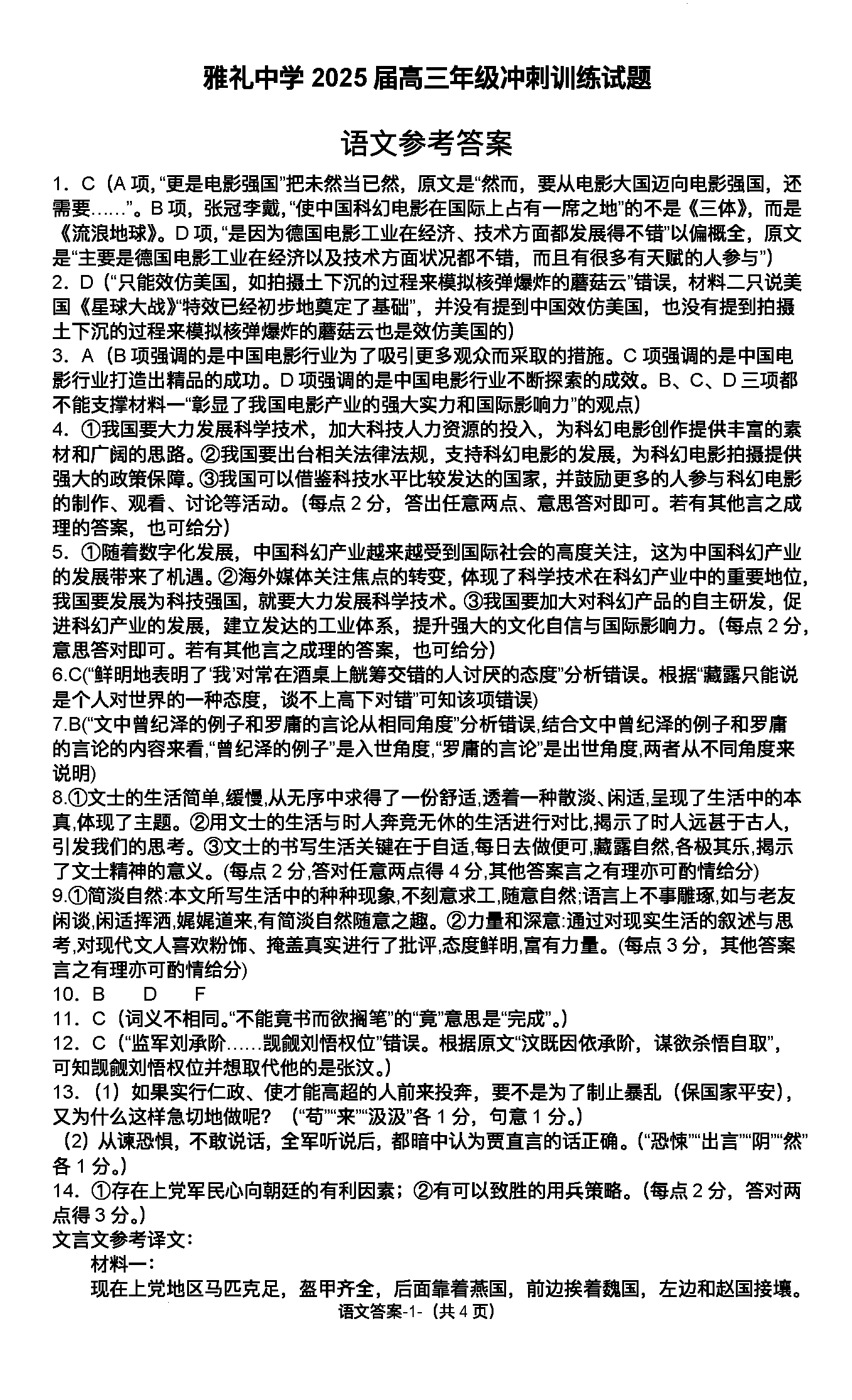湖南雅礼中学2025届高三下学期冲刺训练语文考试已于近日开考,为方便考生考后及时查看考试情况,查漏补缺、弥补不足,本文整理了试题答案解析相关信息!