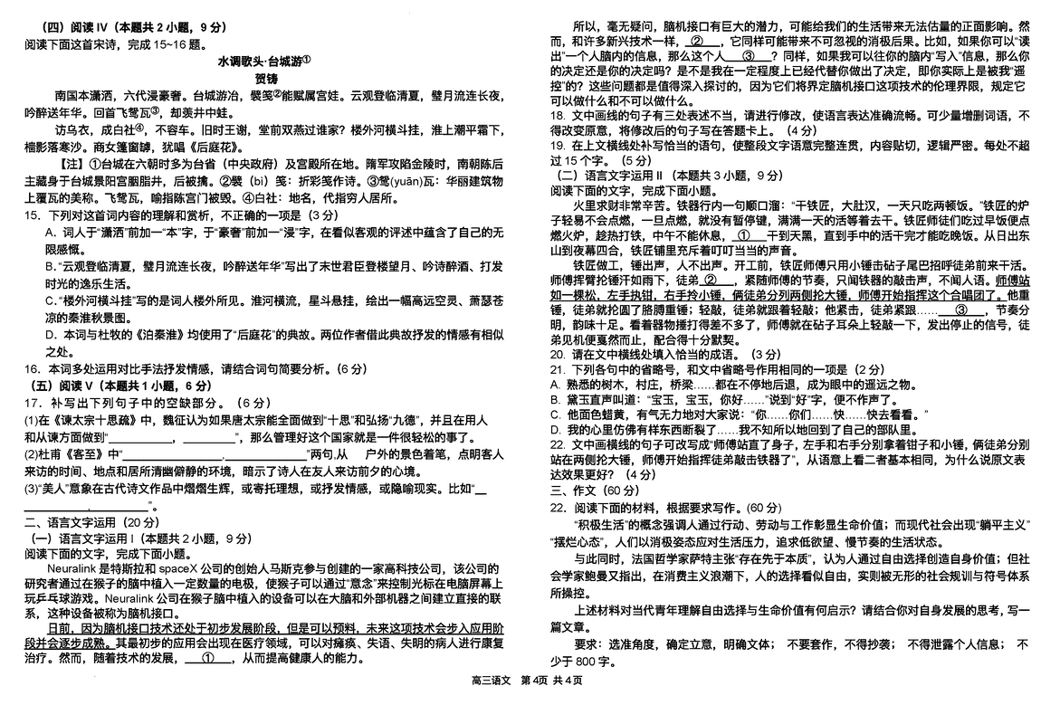 湖南 语文试题
