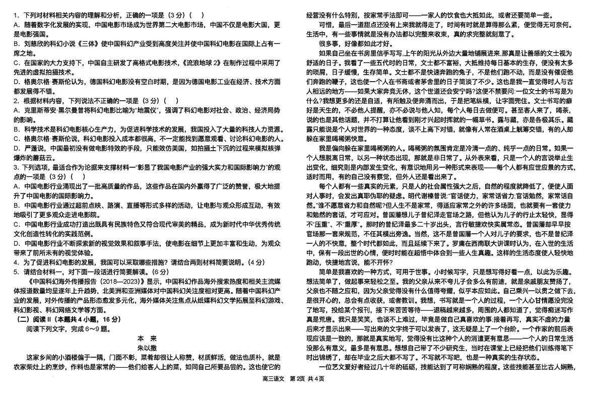 语文试题及答案解析