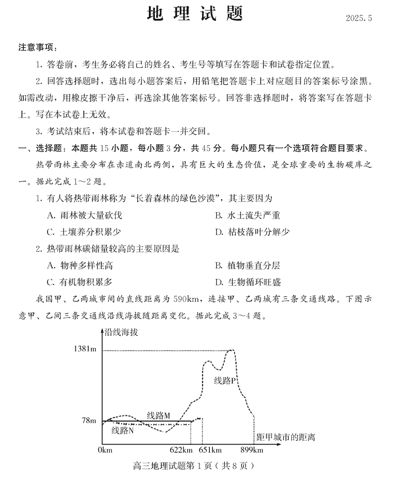 山东潍坊三模2025届高三下学期高考模拟地理考试已于近日开考,为方便考生考后及时查看考试情况,查漏补缺、弥补不足,本文整理了试题答案解析相关信息!
