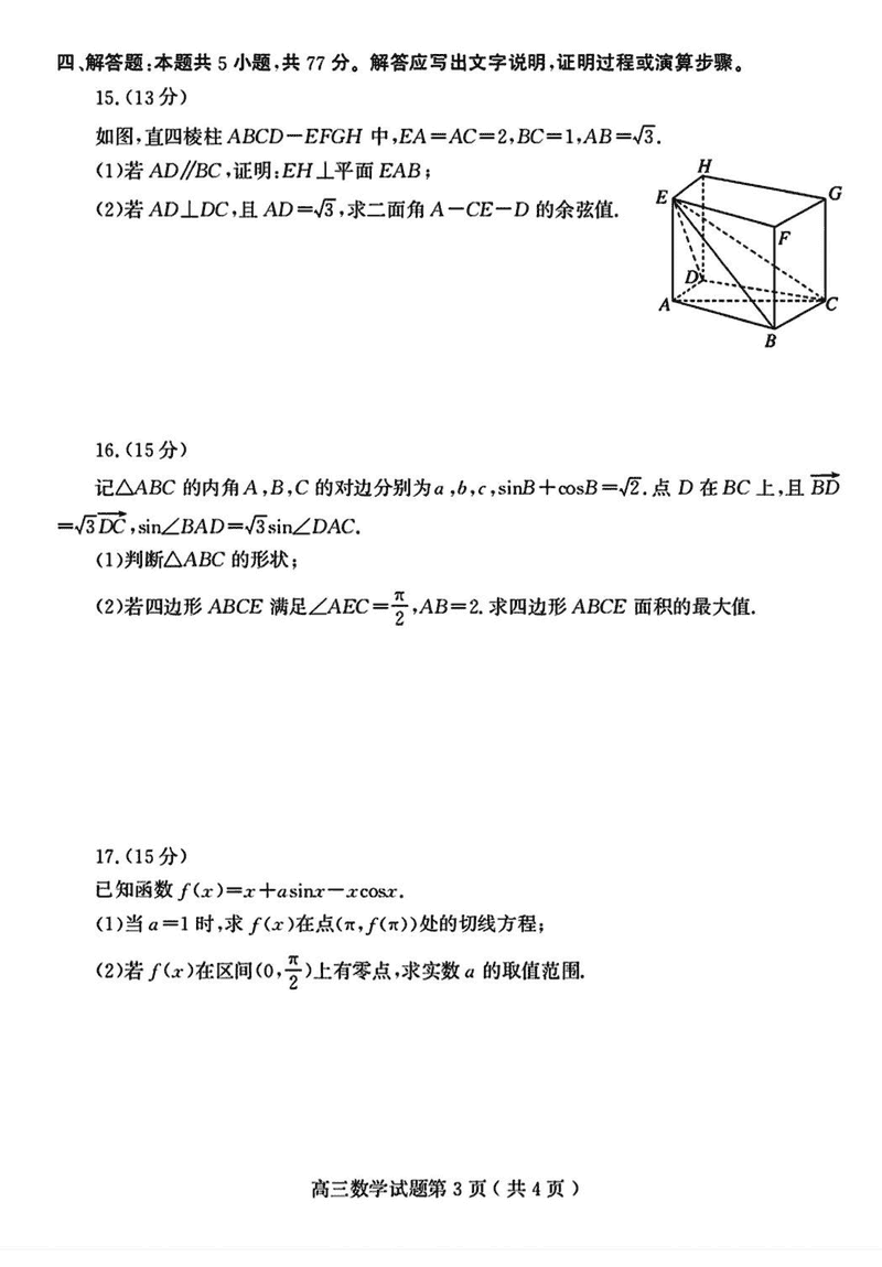 潍坊三模2025届高三下学期高考模拟数学试题及答案 时间:2025-05-19 山东 数学试题 山东潍坊三模2025届高三下学期高考模拟数学考试已于近日开考,为方便考生考后及时查看考试情况,查漏补缺、弥补不足,本文整理了试题答案解析相关信息! 汇总:山东潍坊2025届高三下学期三模试题及答案汇总 数学试题及答案解析