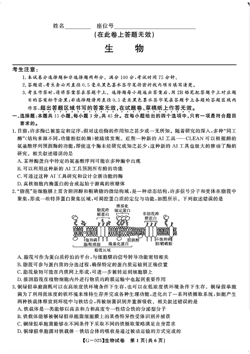 皖江名校联盟2025届高三最后一卷生物试题及答案 时间:2025-05-19 安徽 理综试题 皖江名校联盟2025届高三最后一卷生物考试已于近日开考,为方便考生考后及时查看考试情况,查漏补缺、弥补不足,本文整理了试题答案解析相关信息! 汇总:皖江名校联盟2025届高三最后一卷试题及答案汇总 生物试题及答案解析