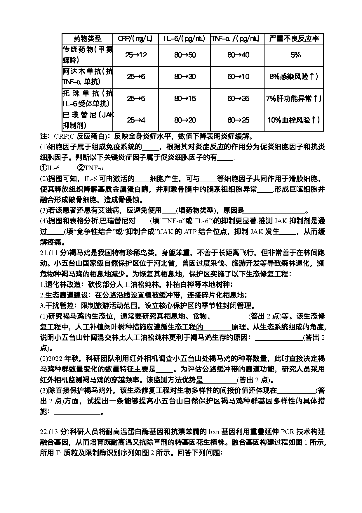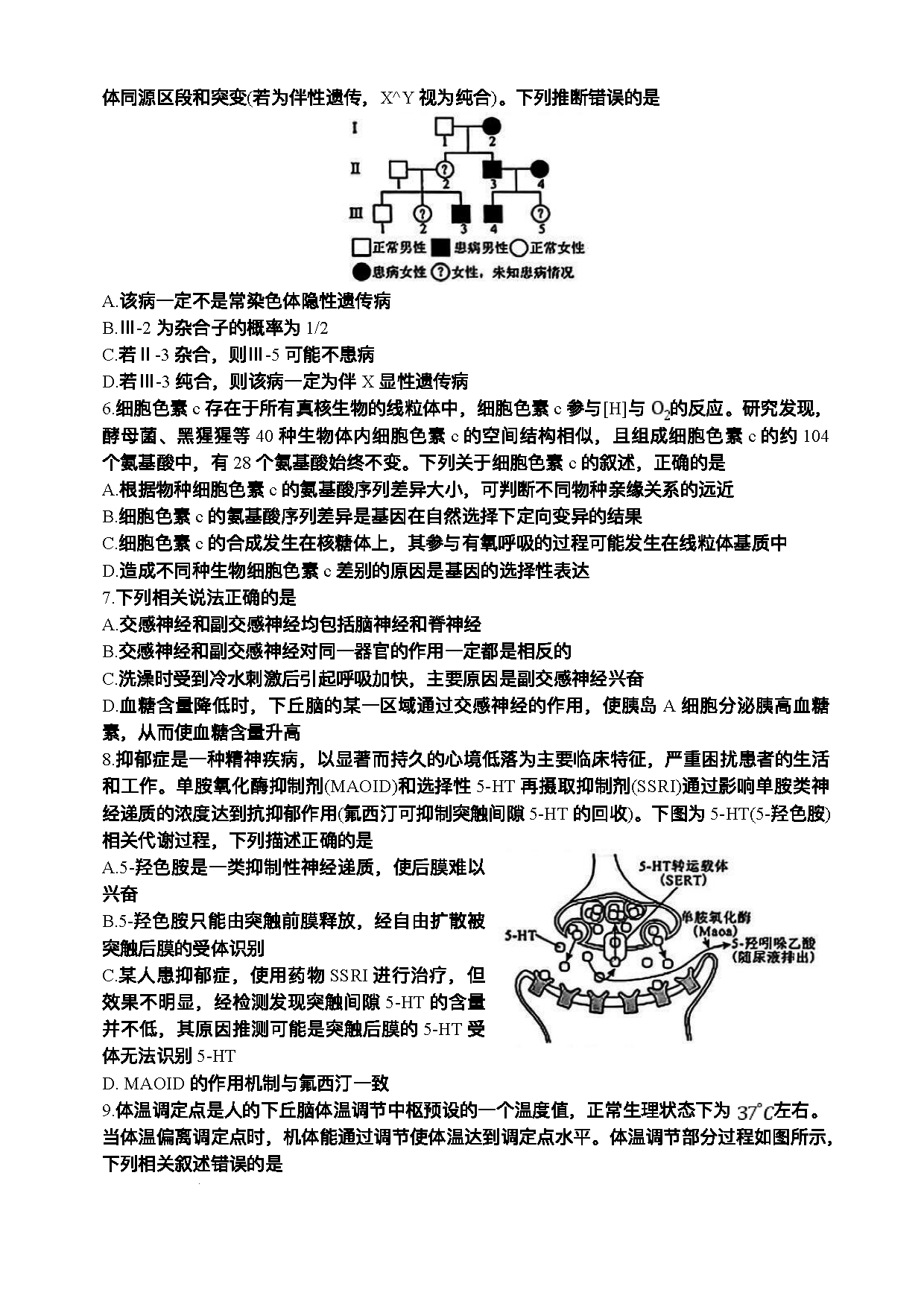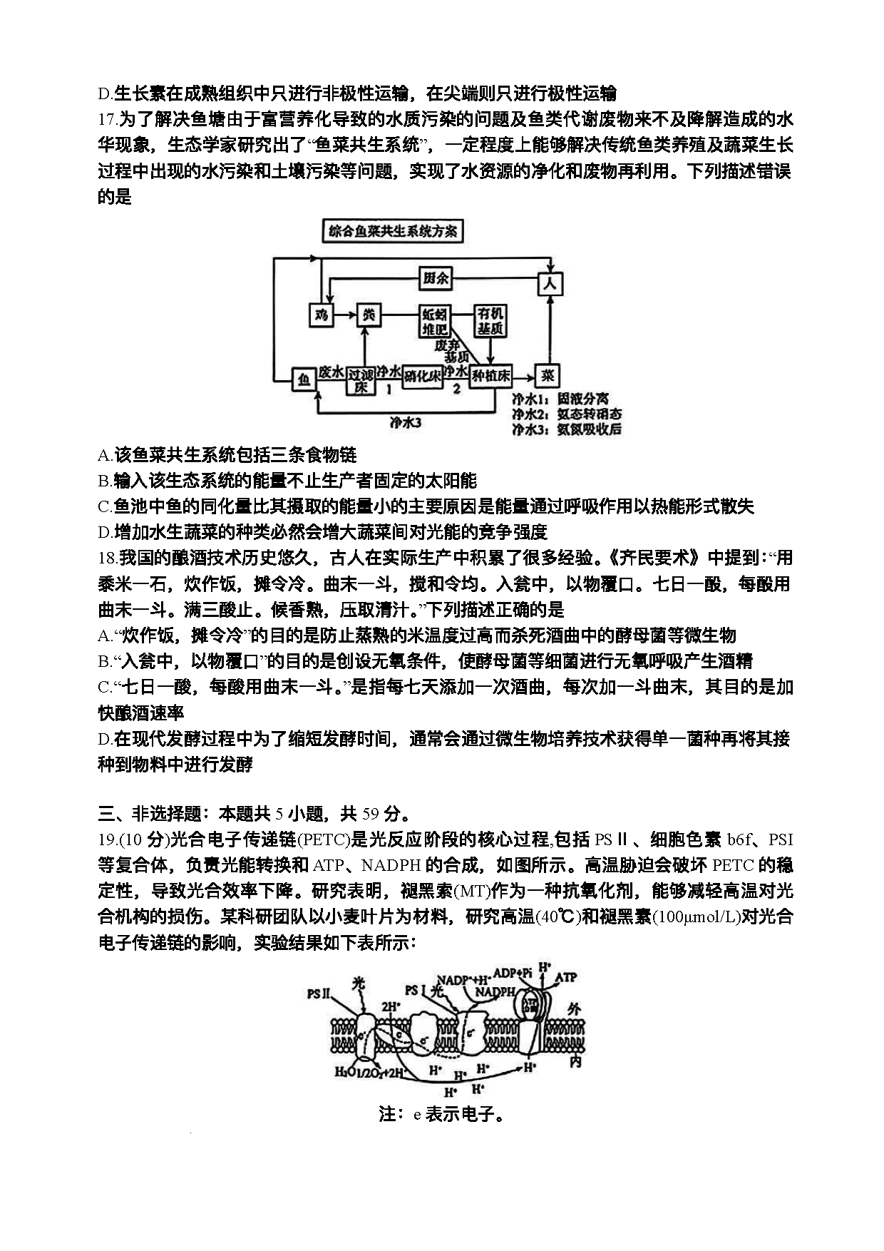 河南金科新未来2025届高三下5月联考生物试题及答案