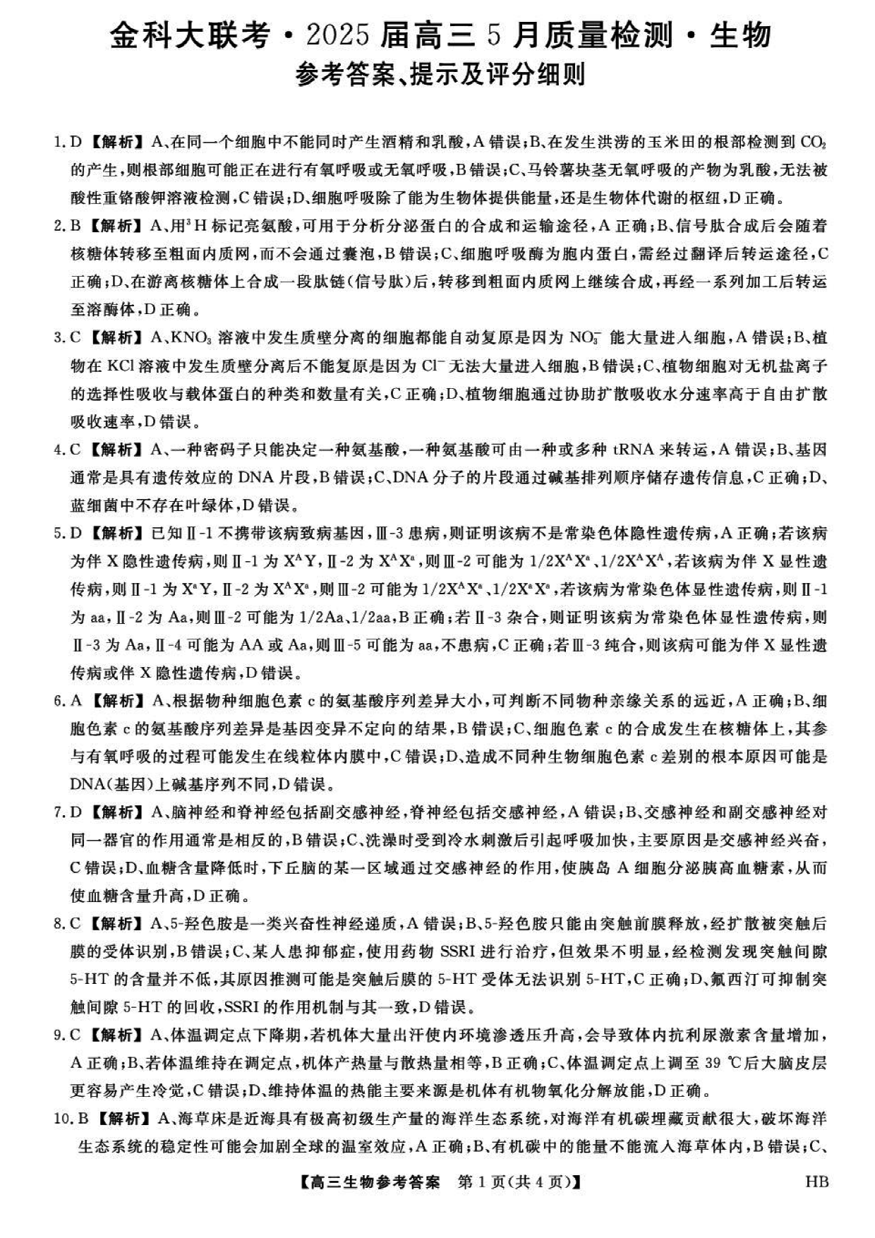 河南金科新未来2025届高三下5月联考生物考试已于近日开考,为方便考生考后及时查看考试情况,查漏补缺、弥补不足,本文整理了试题答案解析相关信息!