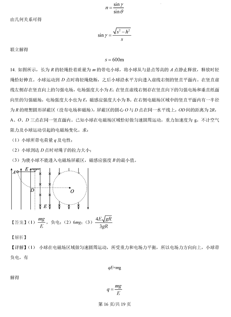 四川师大附中2025届高三下学期三诊模拟二物理考试已于近日开考,为方便考生考后及时查看考试情况,查漏补缺、弥补不足,本文整理了试题答案解析相关信息!