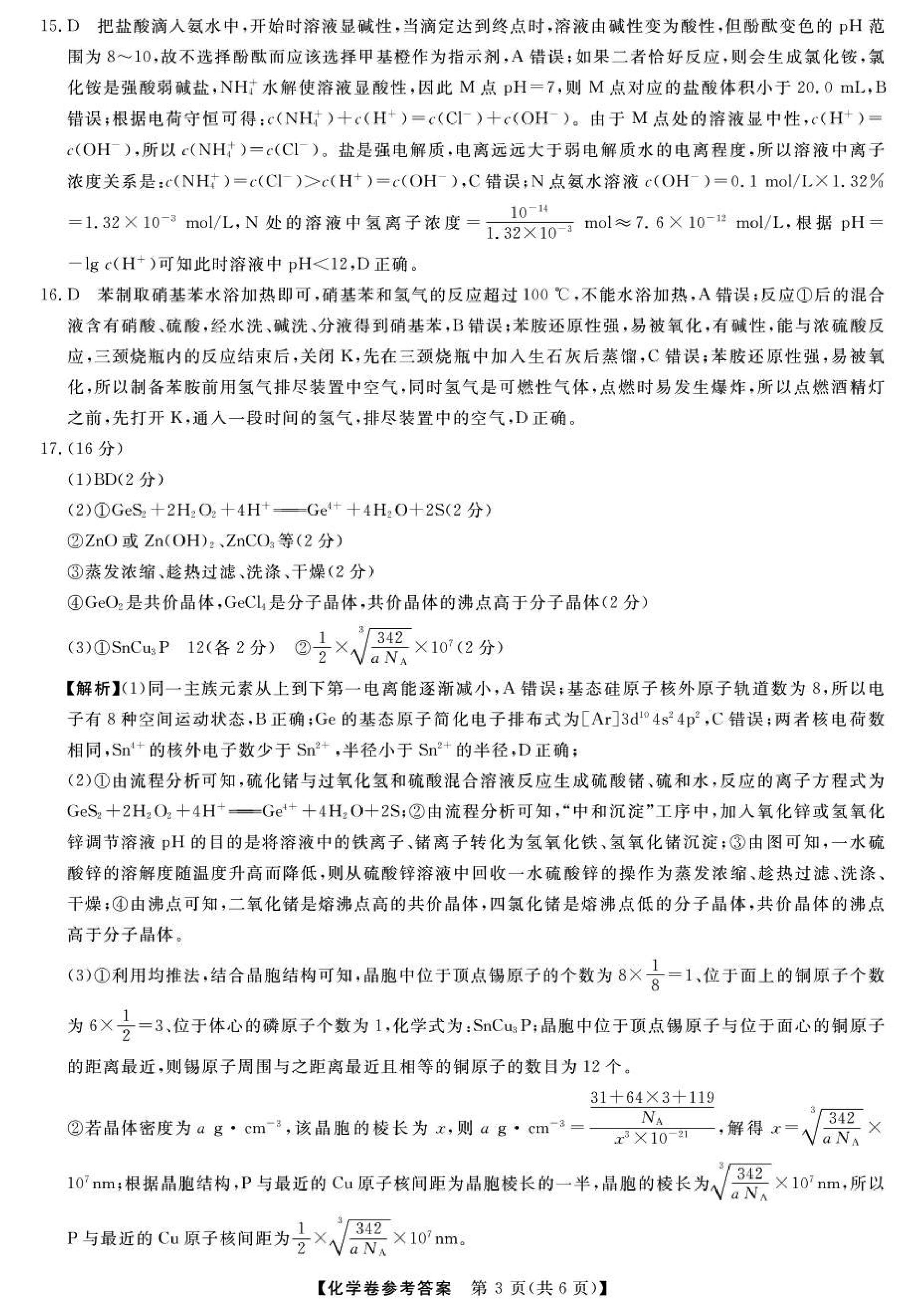 化学试题及答案解析