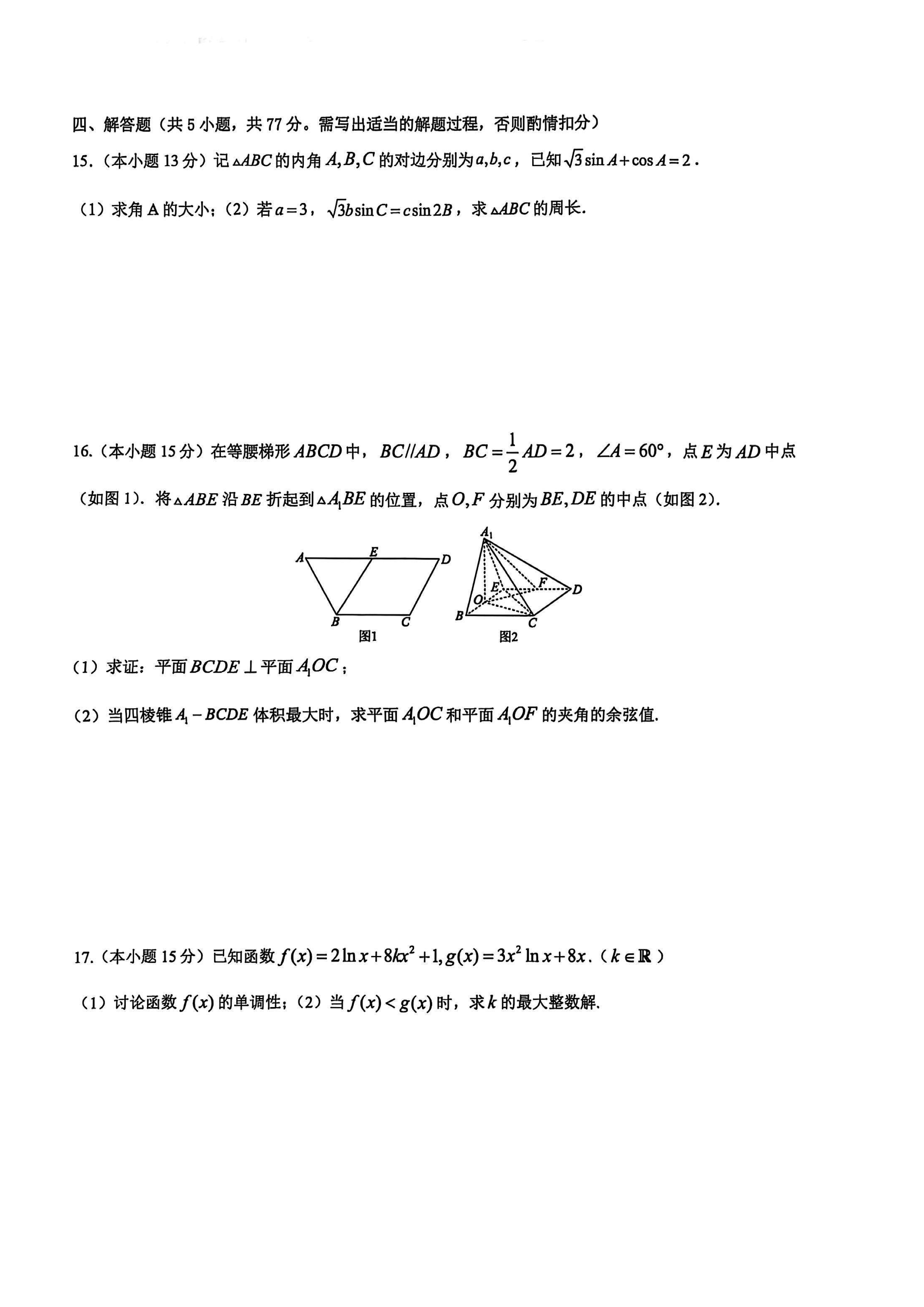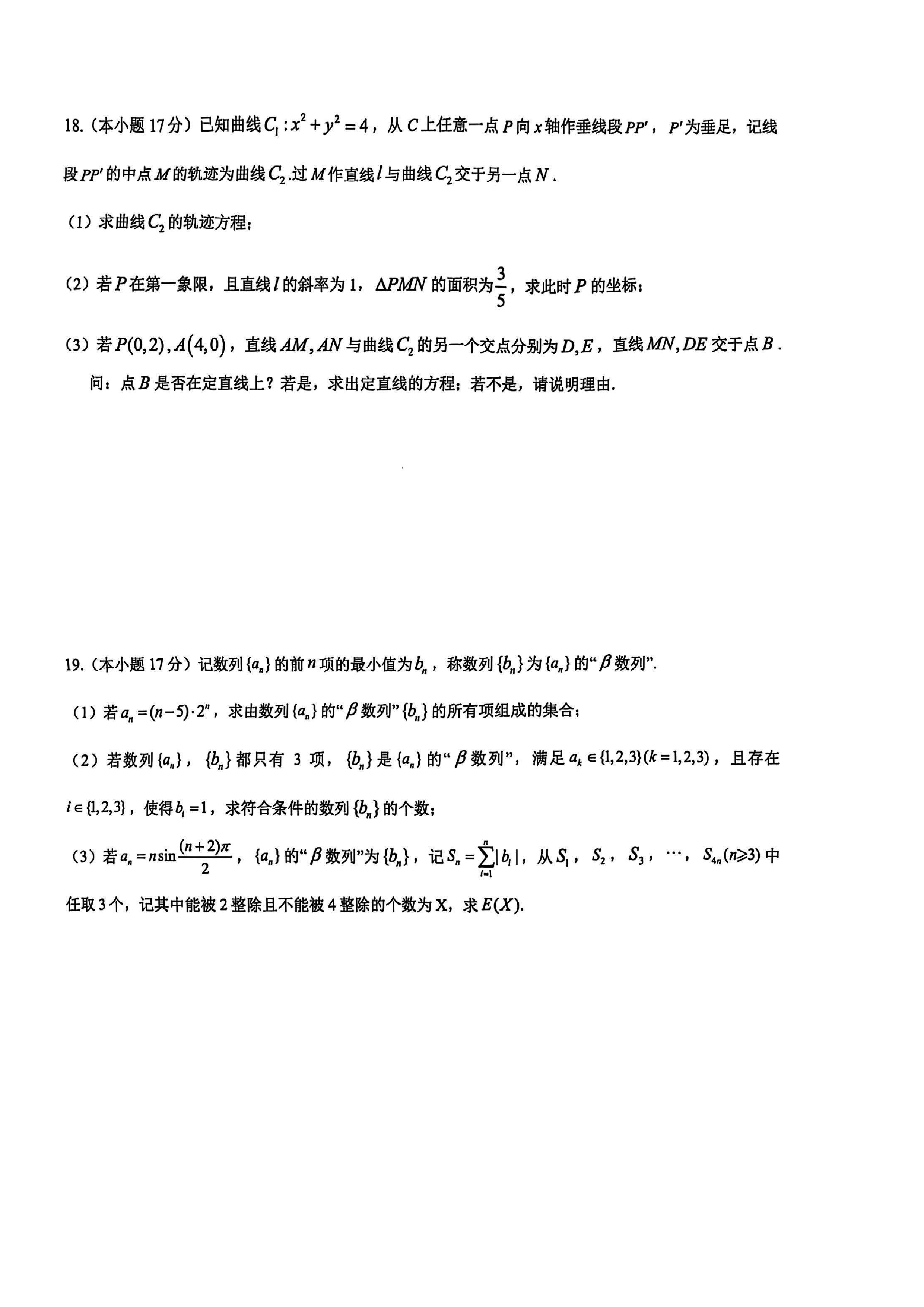 浙江省五校联盟2024-2025学年高二下学期5月质检数学试题及答案