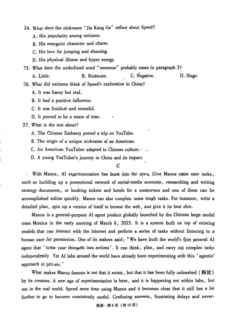 西南名校联盟2025届“3+3+3”高考备考诊断性联考(四)英语试题及答案