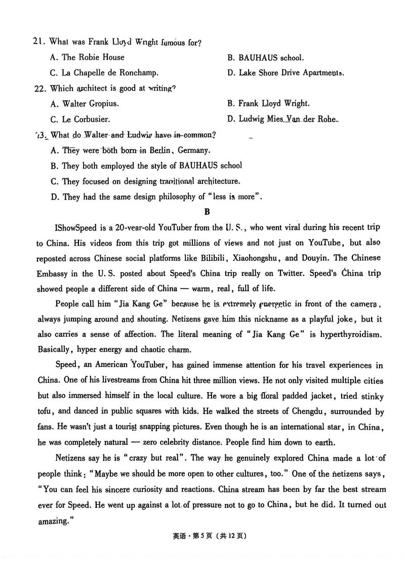 贵州 英语试题