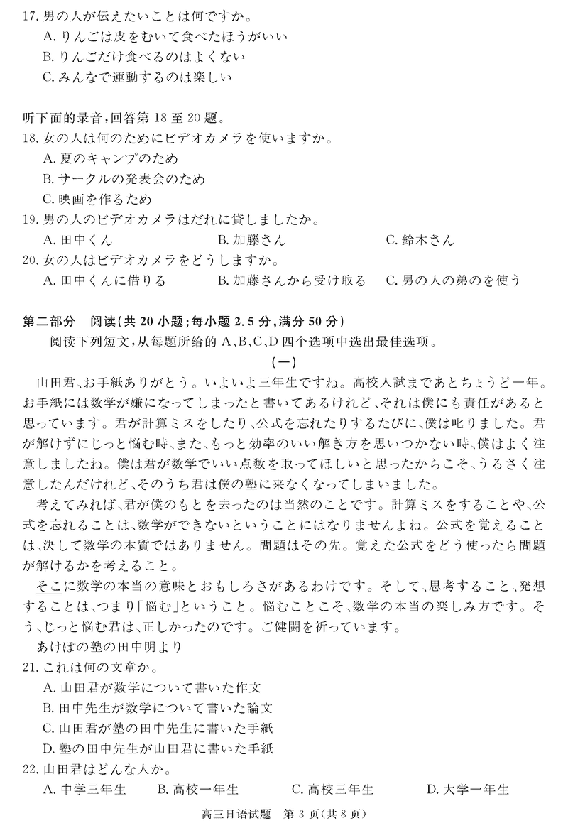 安徽华师联盟2025届高三下5月质检日语试题及答案