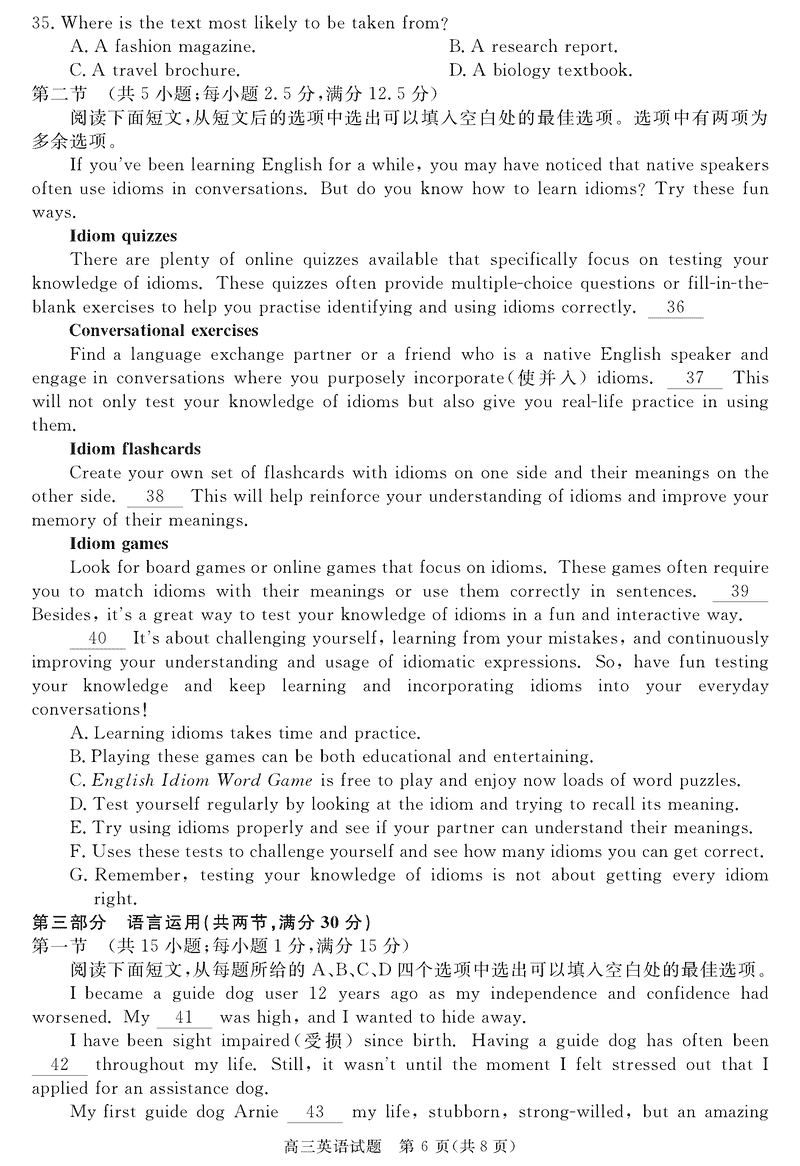 安徽华师联盟2025届高三下5月质检英语试题及答案
