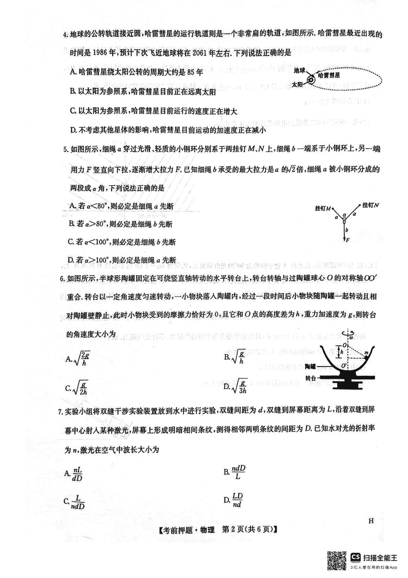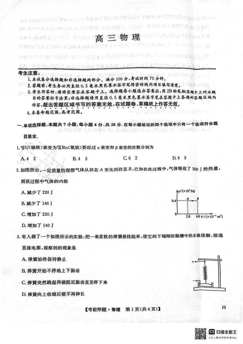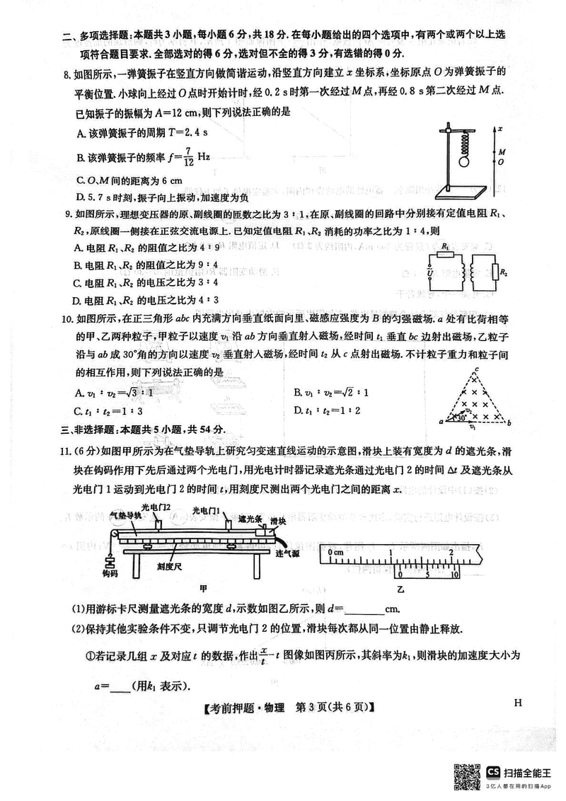 九师联盟2025届高三5月考前押题联考物理试题及答案 时间:2025-05-23 理综试题 九师联盟2025届高三5月考前押题联考物理考试已于近日开考,为方便考生考后及时查看考试情况,查漏补缺、弥补不足,本文整理了试题答案解析相关信息! 汇总:九师联盟2025届高三5月考前押题联考试题及答案汇总 物理试题及答案解析