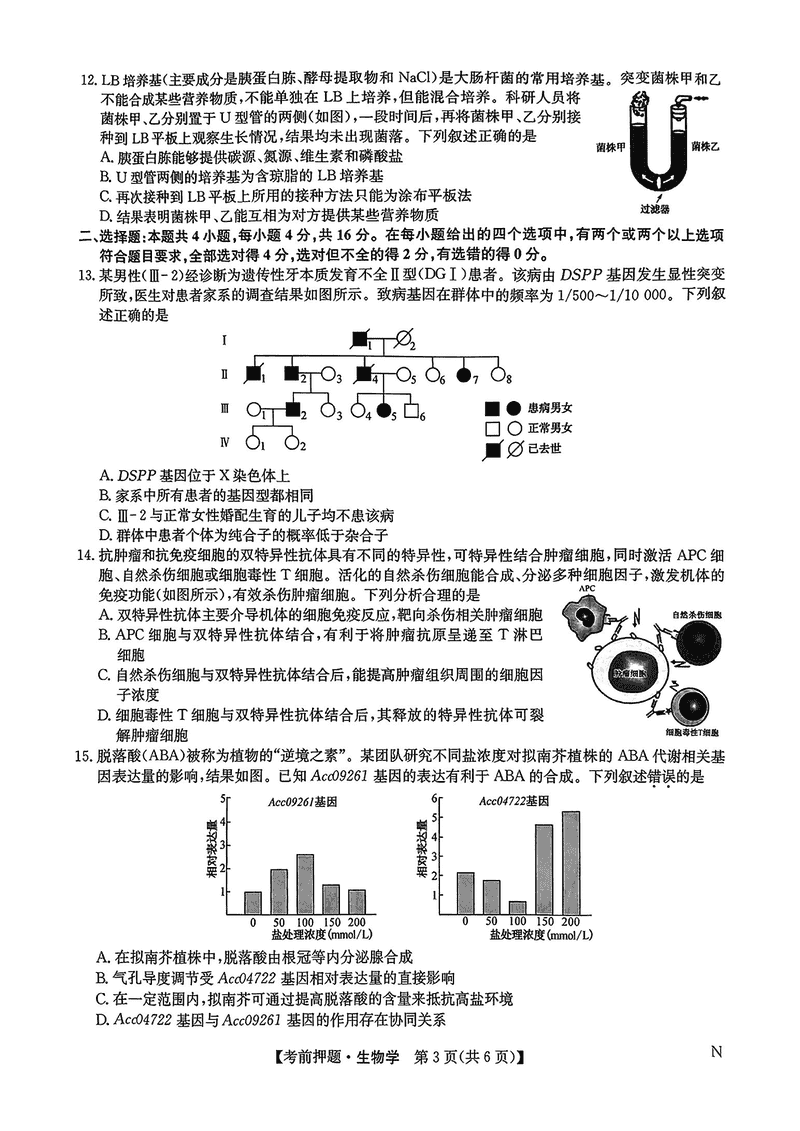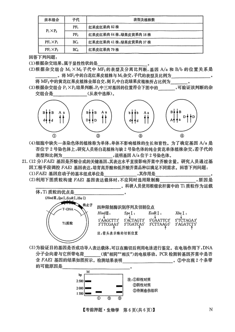 九师联盟2025届高三5月考前押题联考生物试题及答案 时间:2025-05-23 理综试题 九师联盟2025届高三5月考前押题联考生物考试已于近日开考,为方便考生考后及时查看考试情况,查漏补缺、弥补不足,本文整理了试题答案解析相关信息! 汇总:九师联盟2025届高三5月考前押题联考试题及答案汇总 生物试题及答案解析
