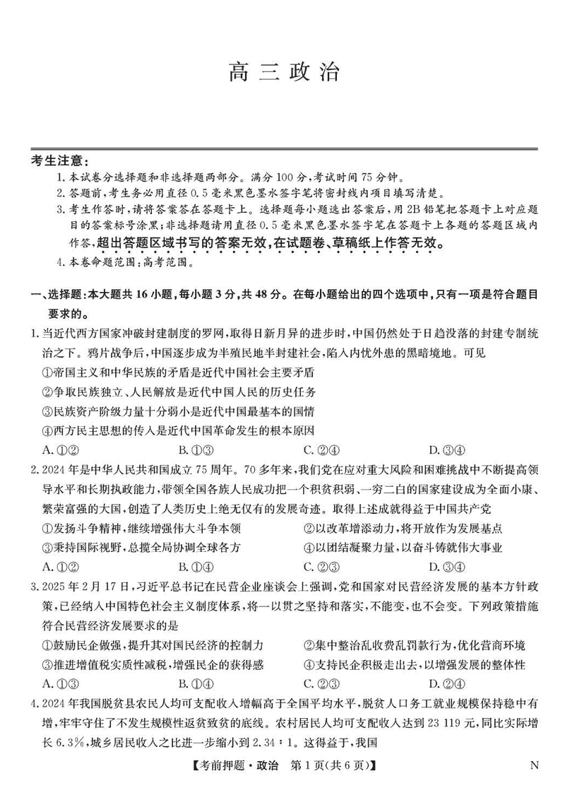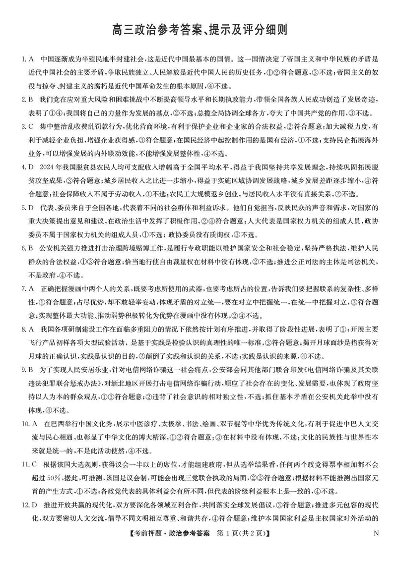 九师联盟2025届高三5月考前押题联考政治试题及答案 时间:2025-05-23 文综试题 九师联盟2025届高三5月考前押题联考政治考试已于近日开考,为方便考生考后及时查看考试情况,查漏补缺、弥补不足,本文整理了试题答案解析相关信息! 汇总:九师联盟2025届高三5月考前押题联考试题及答案汇总 政治试题及答案解析