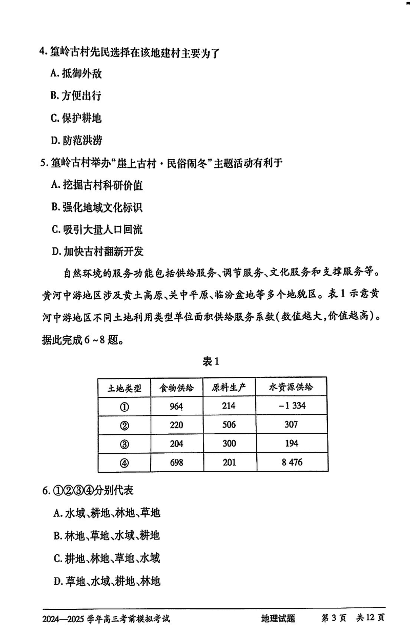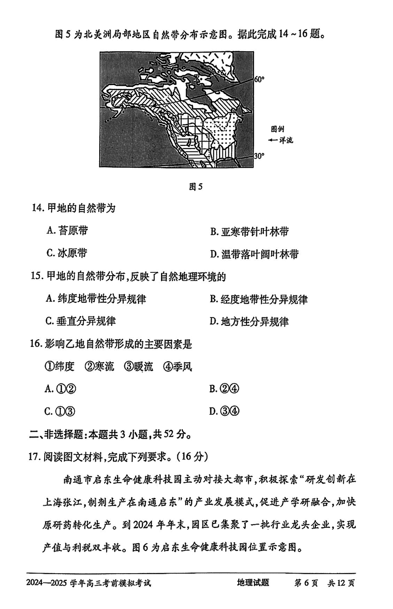 2025届河南省天一大联考高三考前模拟地理试题及答案