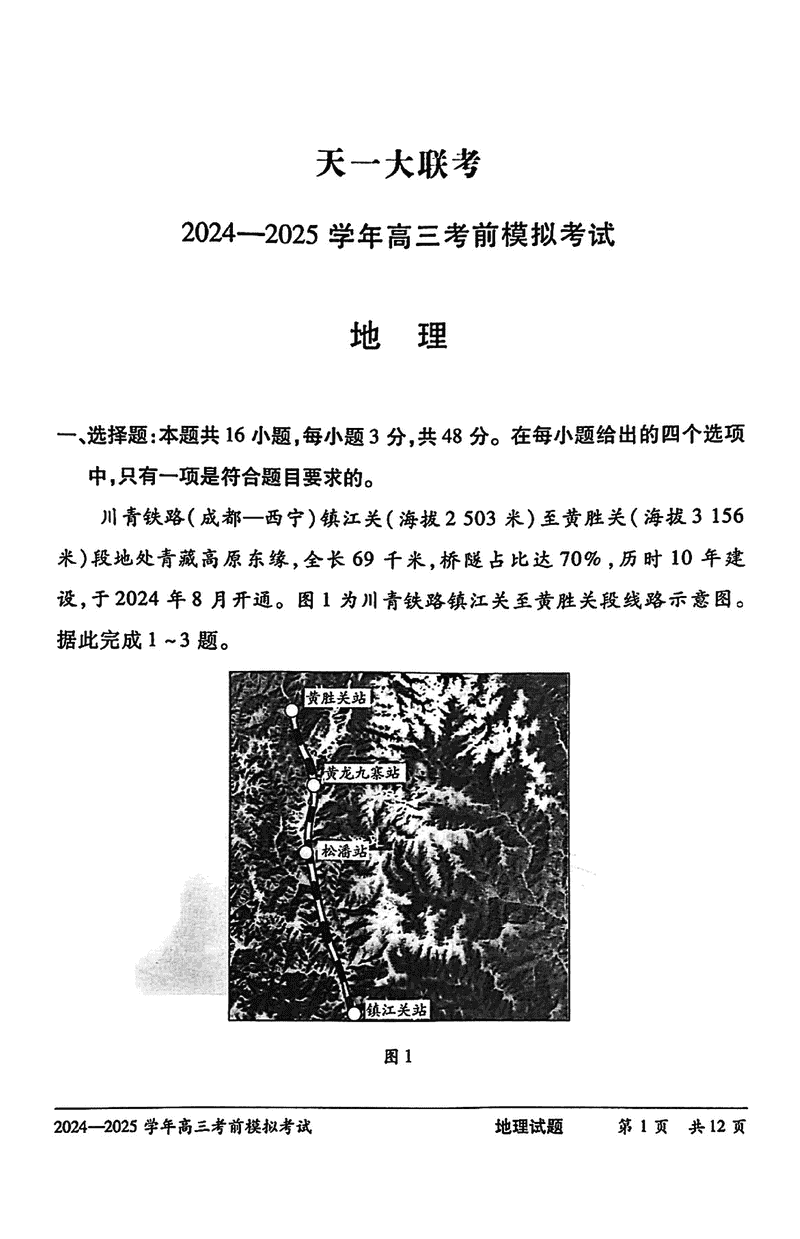 2025届河南省天一大联考高三考前模拟地理考试已于近日开考,为方便考生考后及时查看考试情况,查漏补缺、弥补不足,本文整理了试题答案解析相关信息!