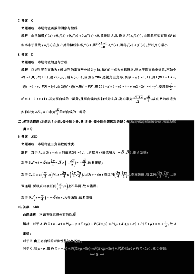 数学试题及答案解析