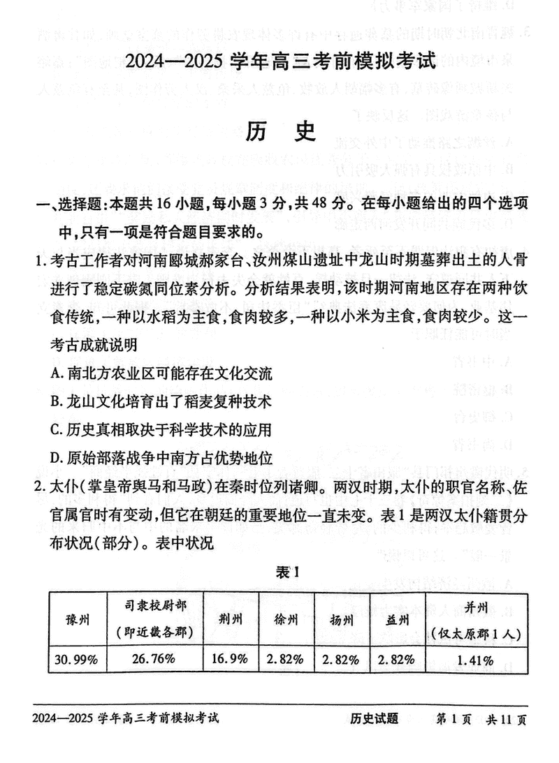 2025届河南省天一大联考高三考前模拟历史考试已于近日开考,为方便考生考后及时查看考试情况,查漏补缺、弥补不足,本文整理了试题答案解析相关信息!