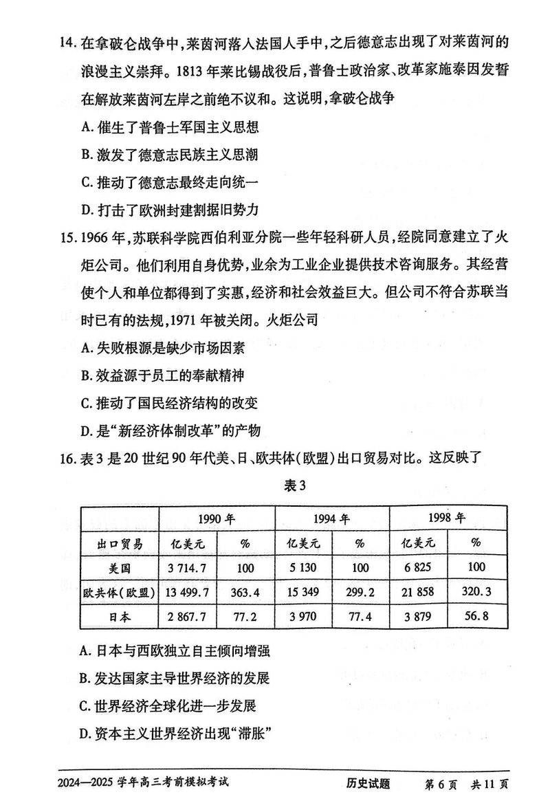 2025届河南省天一大联考高三考前模拟历史试题及答案