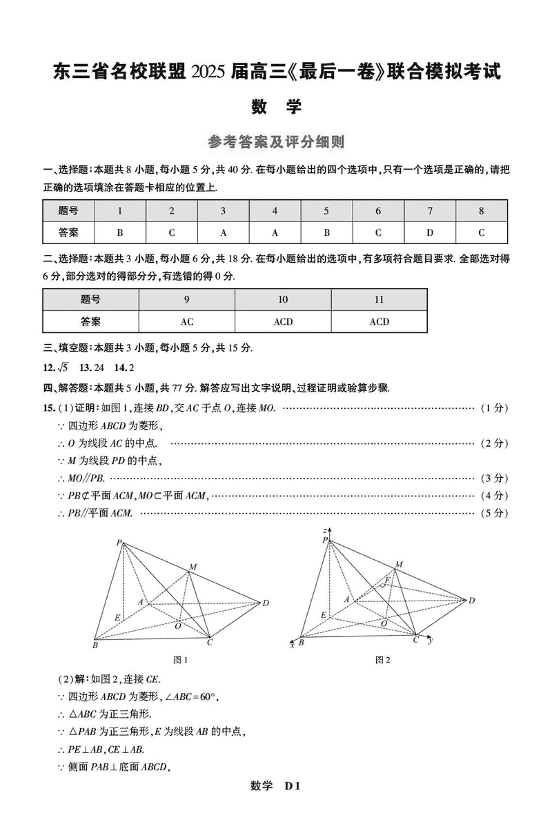 东三省名校联盟2025届高三最后一卷联考数学考试已于近日开考,为方便考生考后及时查看考试情况,查漏补缺、弥补不足,本文整理了试题答案解析相关信息!